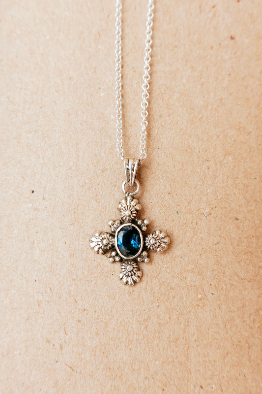N190- Ocean Blue Kyanite Silver Cross