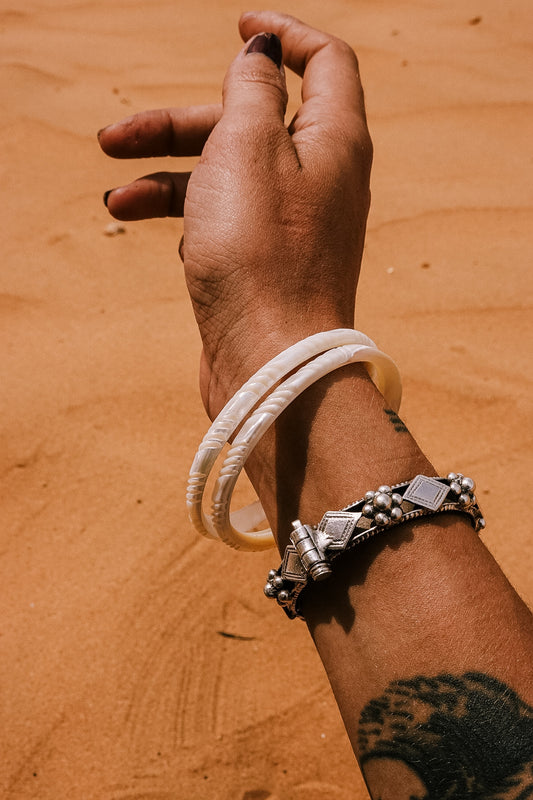 N210 - Natural Shell Bangles Couple. XL