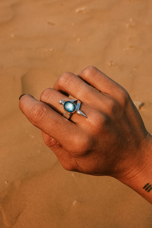 N177 - Silver Ring with Rainbow Moonstone