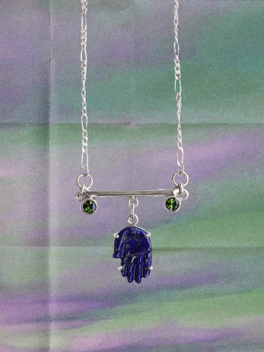 N86- Protection Lapis lazuli Hand with duo of Tourmalines