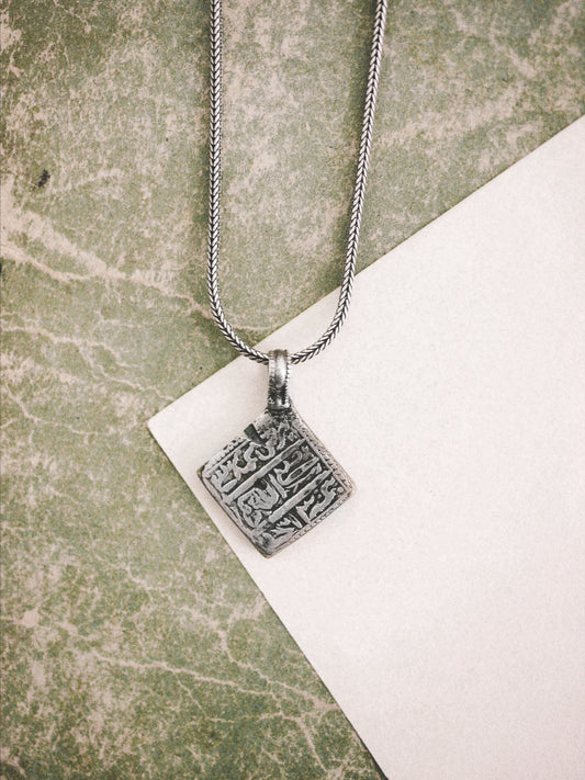 N132 Antique Miniature Taweez & Mangalsutra Beaded Silver Necklace