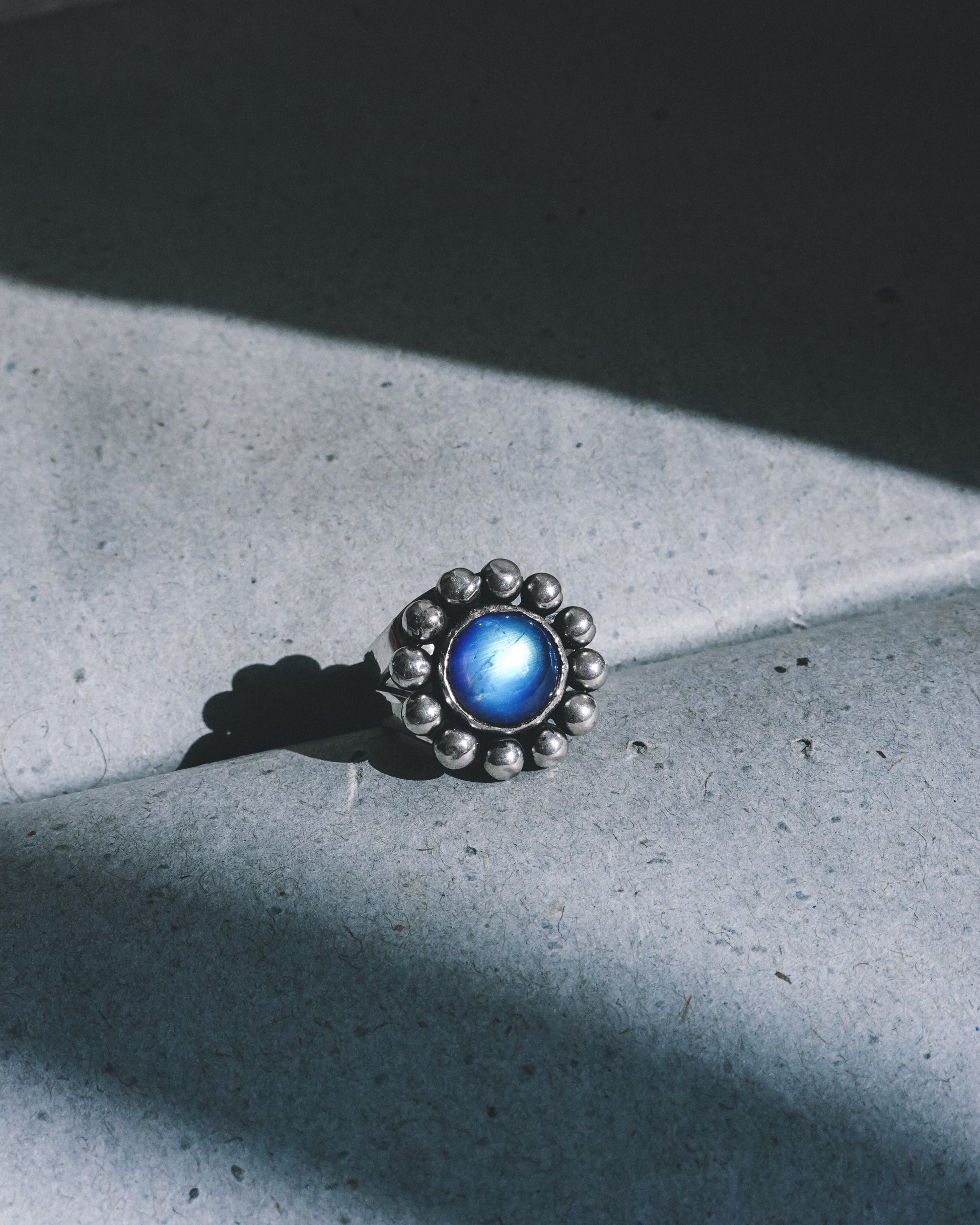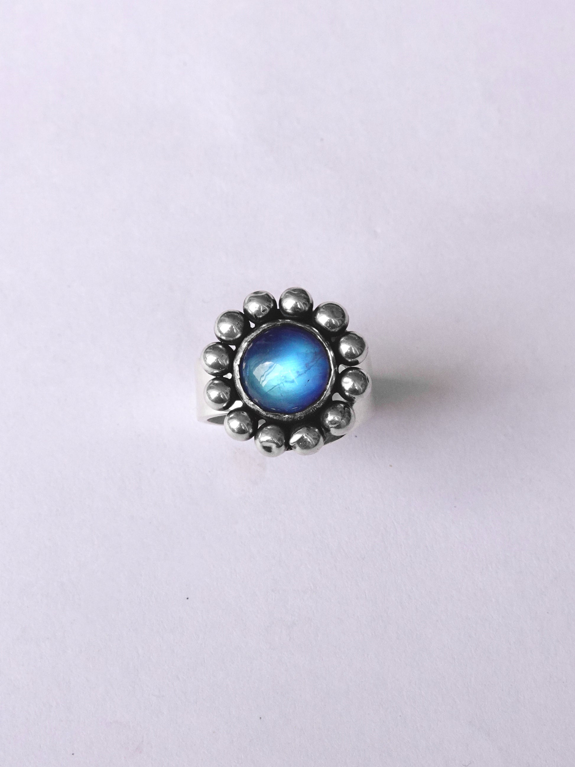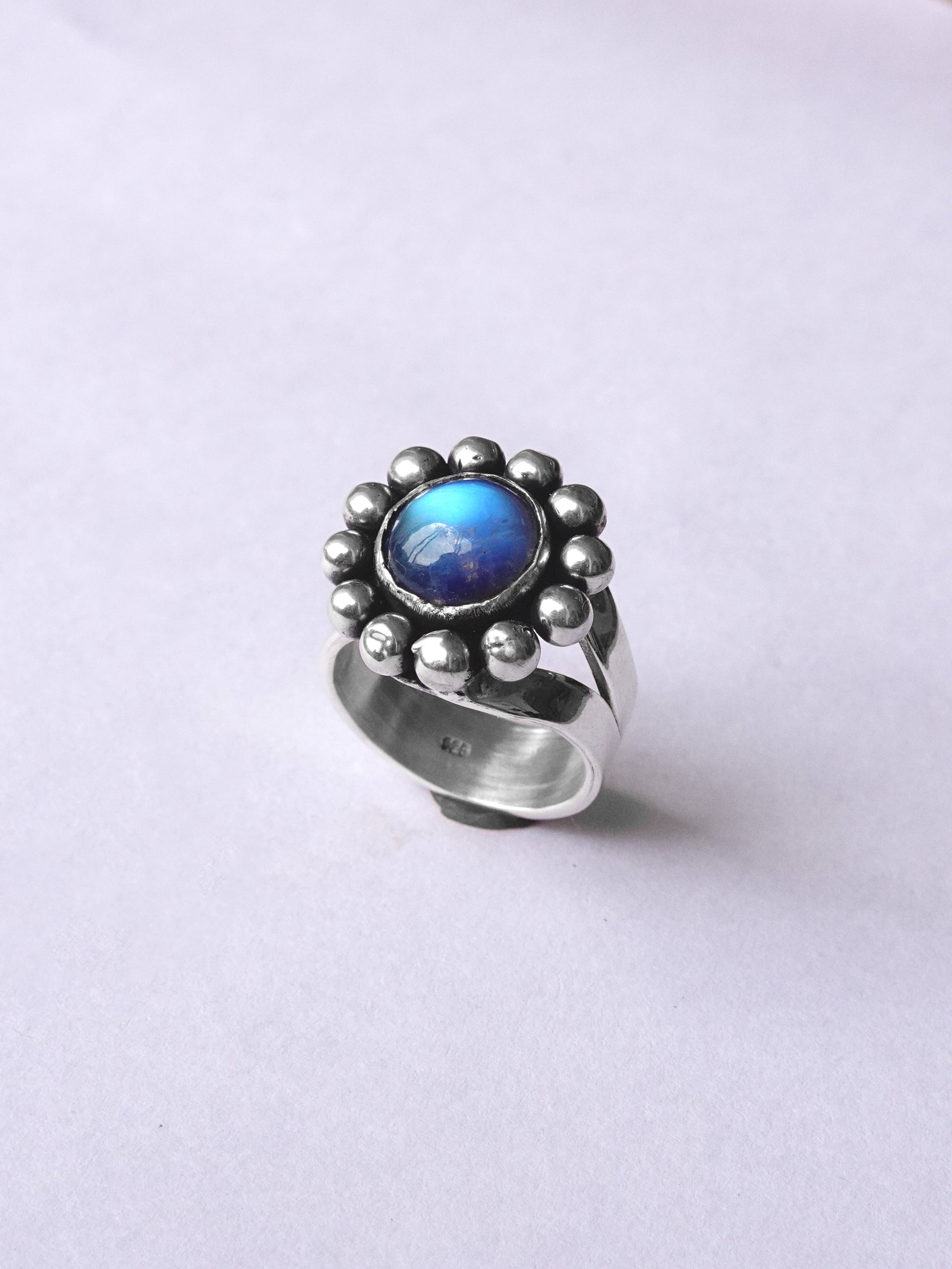 N117 - Phool Rainbow moonstone Adjustable Silver Ring