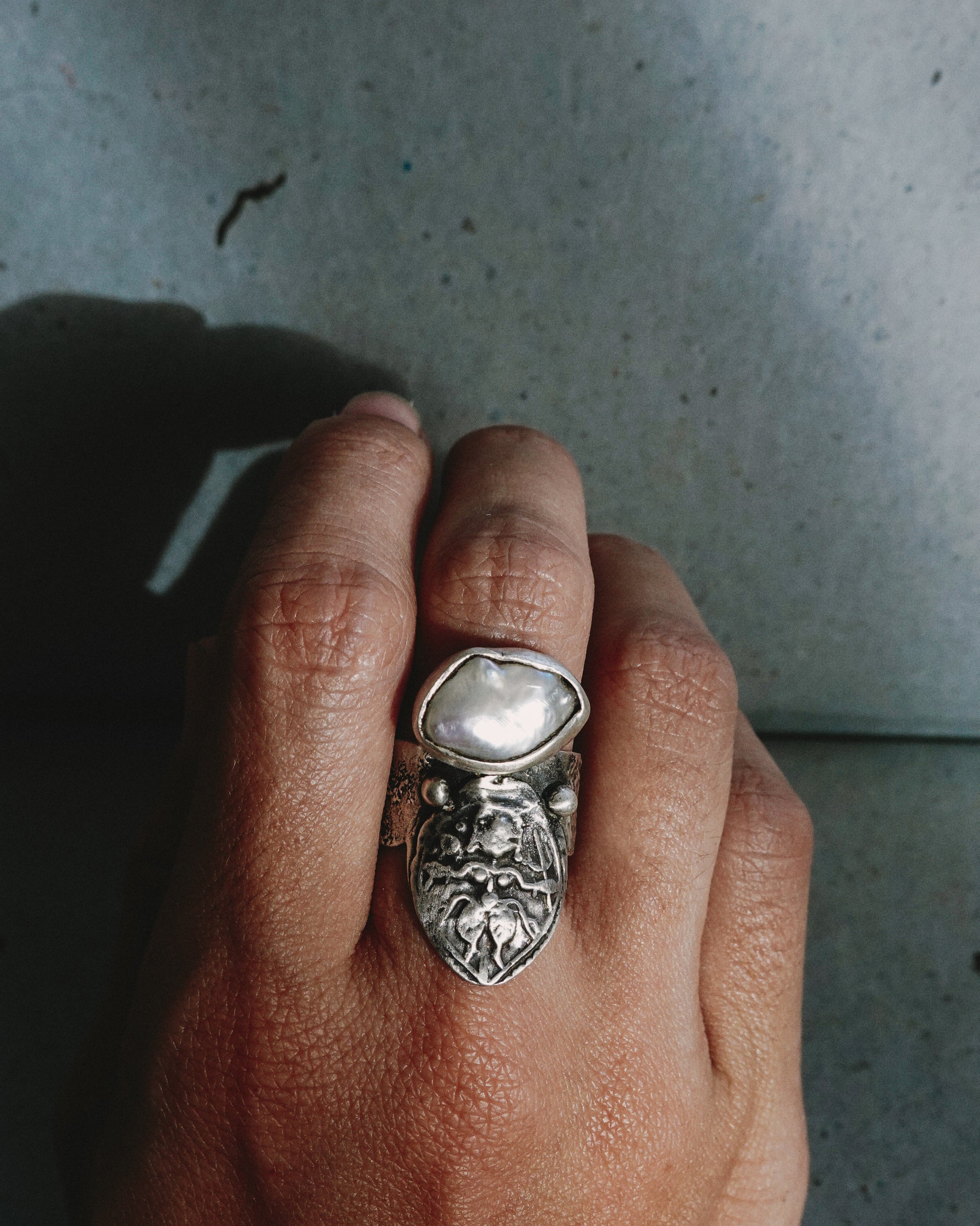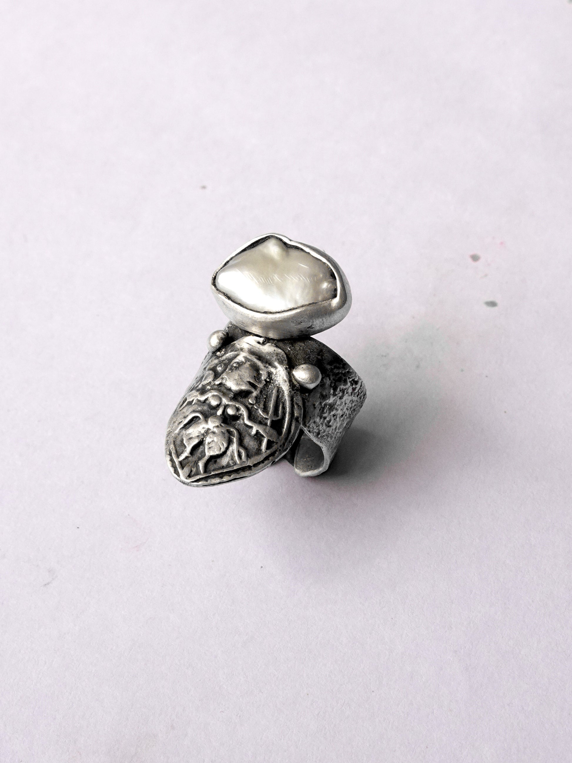 N119 - Antique Icone Moti Adjustable Silver Ring