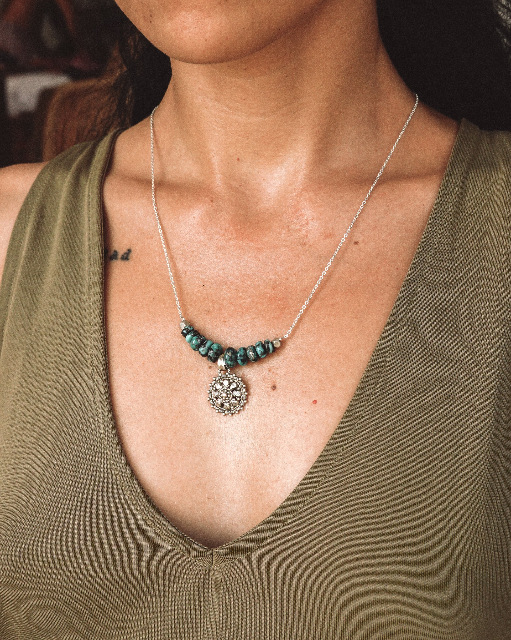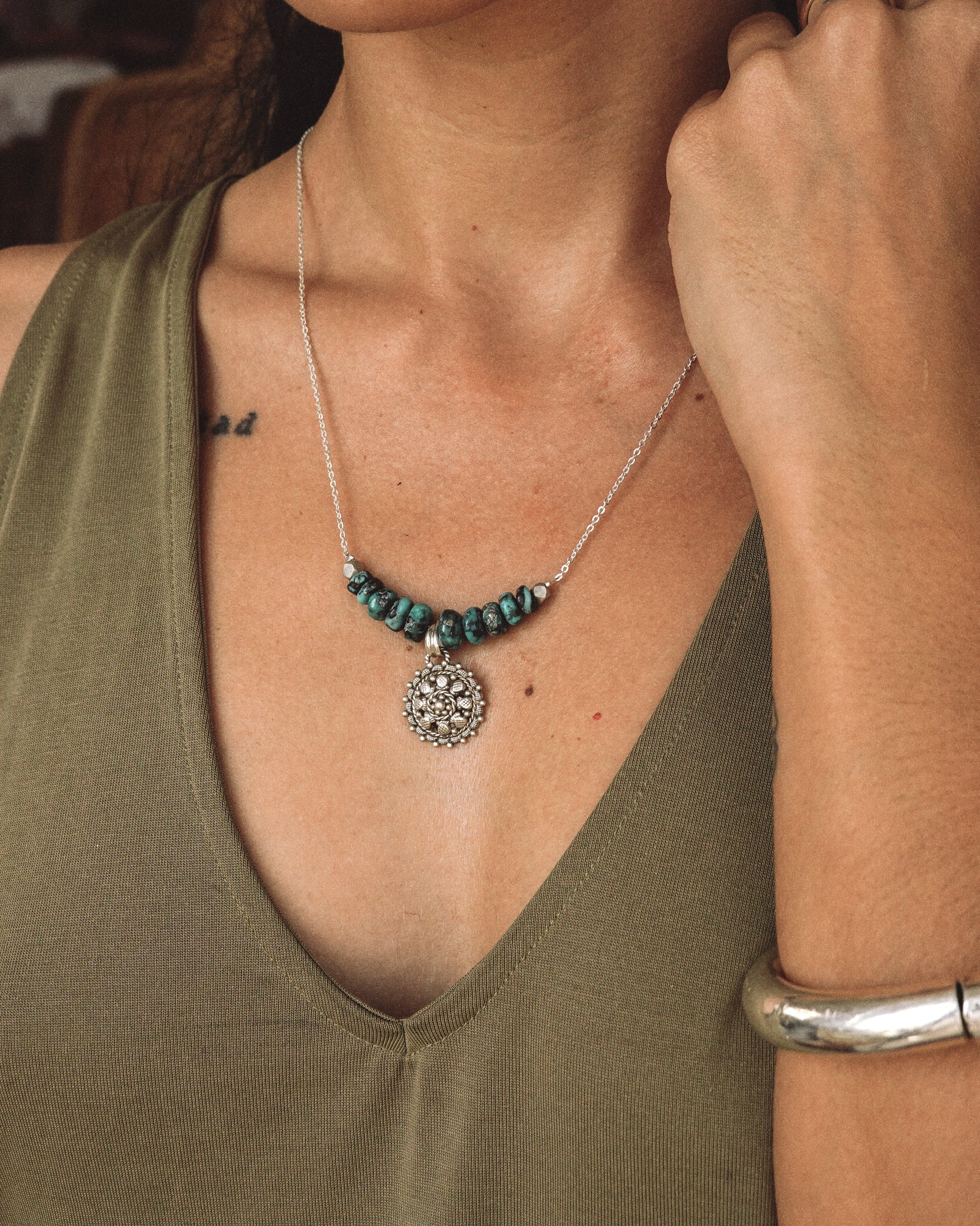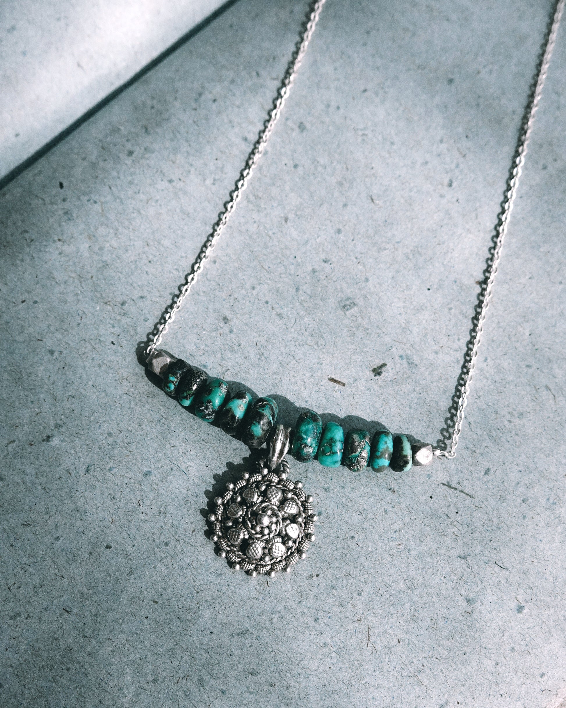 N127 -Natural Turquoise & Silver Necklace
