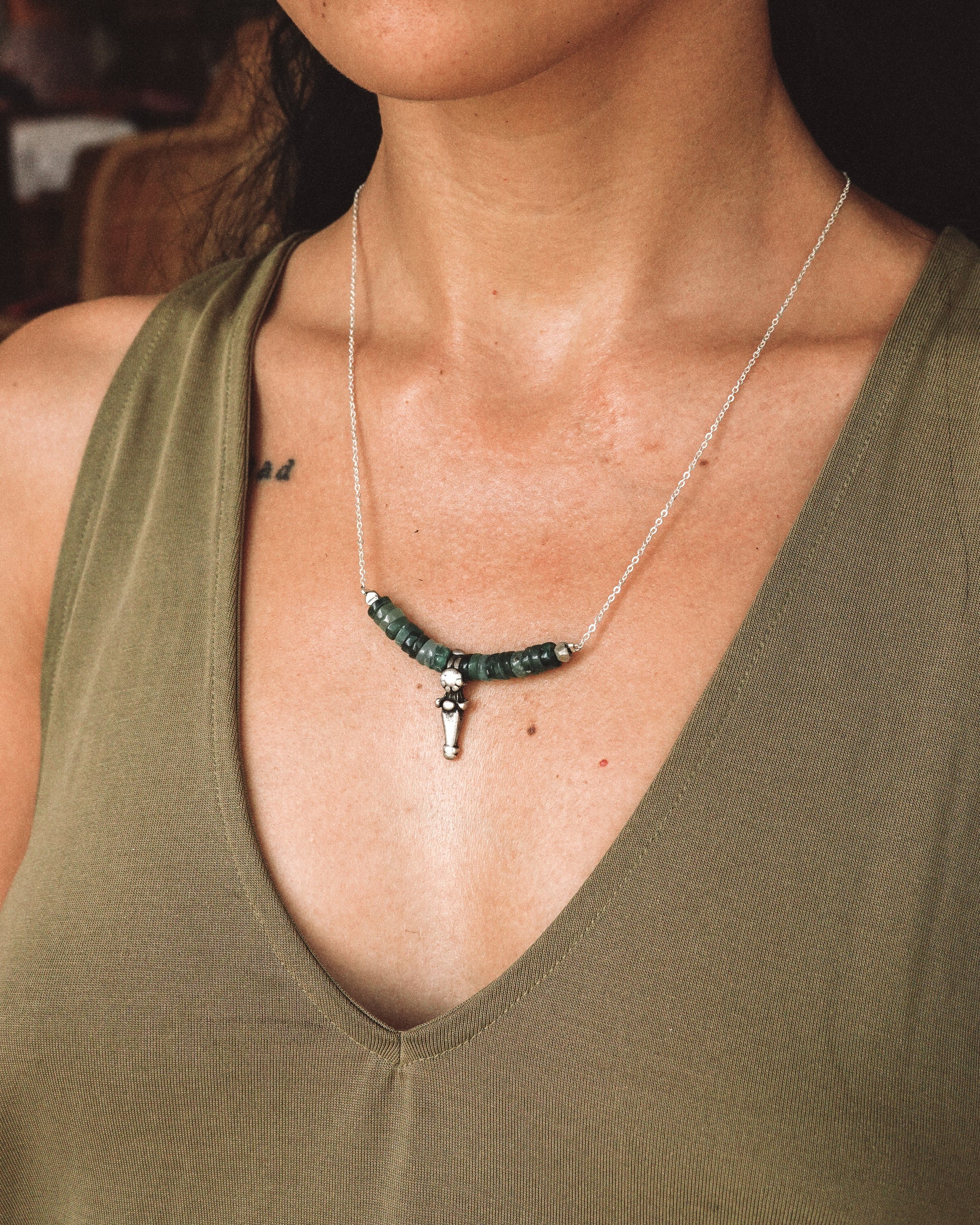 N129 -Natural Turquoise & Antique Bead Silver Necklace