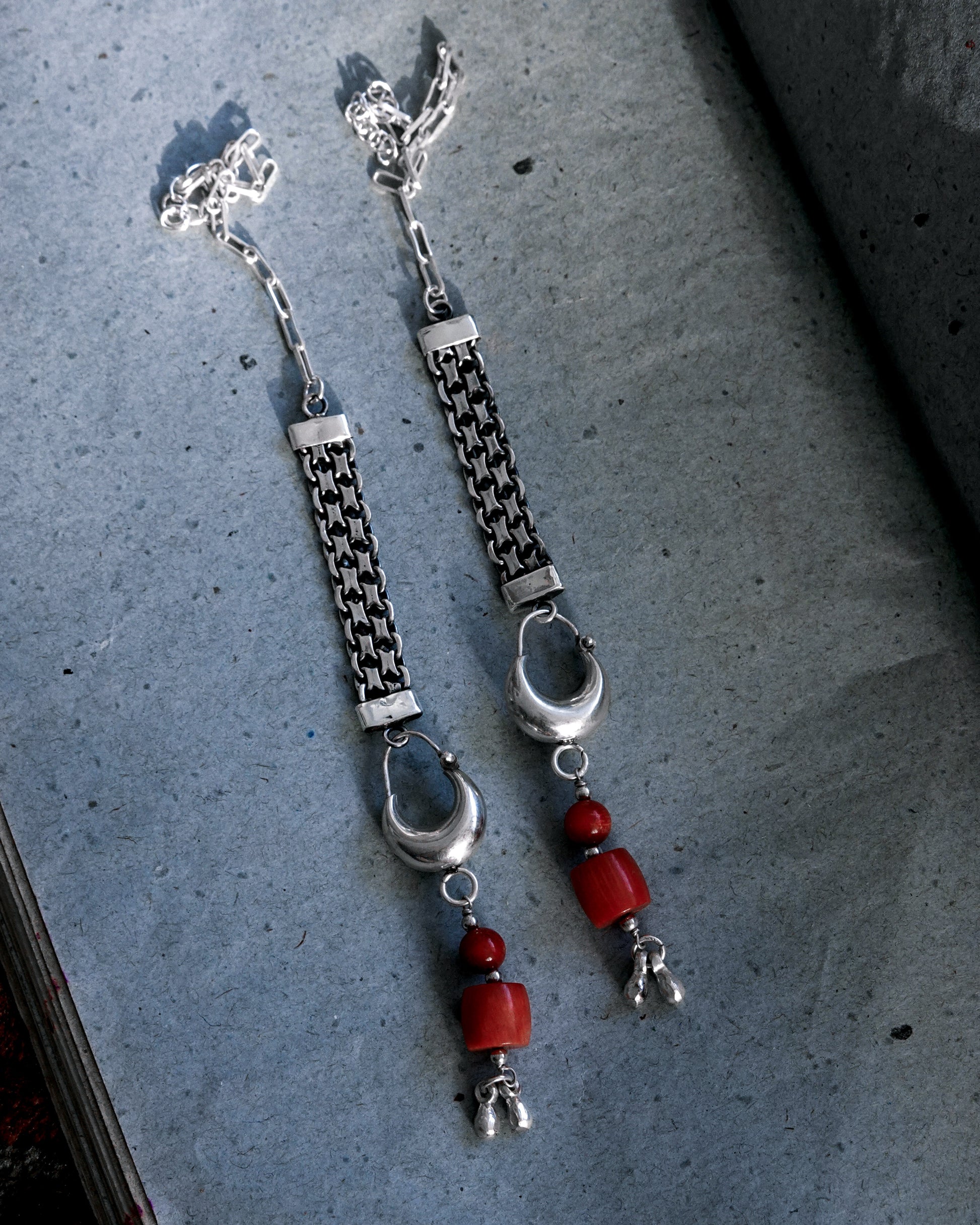 N135- Jela Climb Up With Natural Coral Silver Earrings