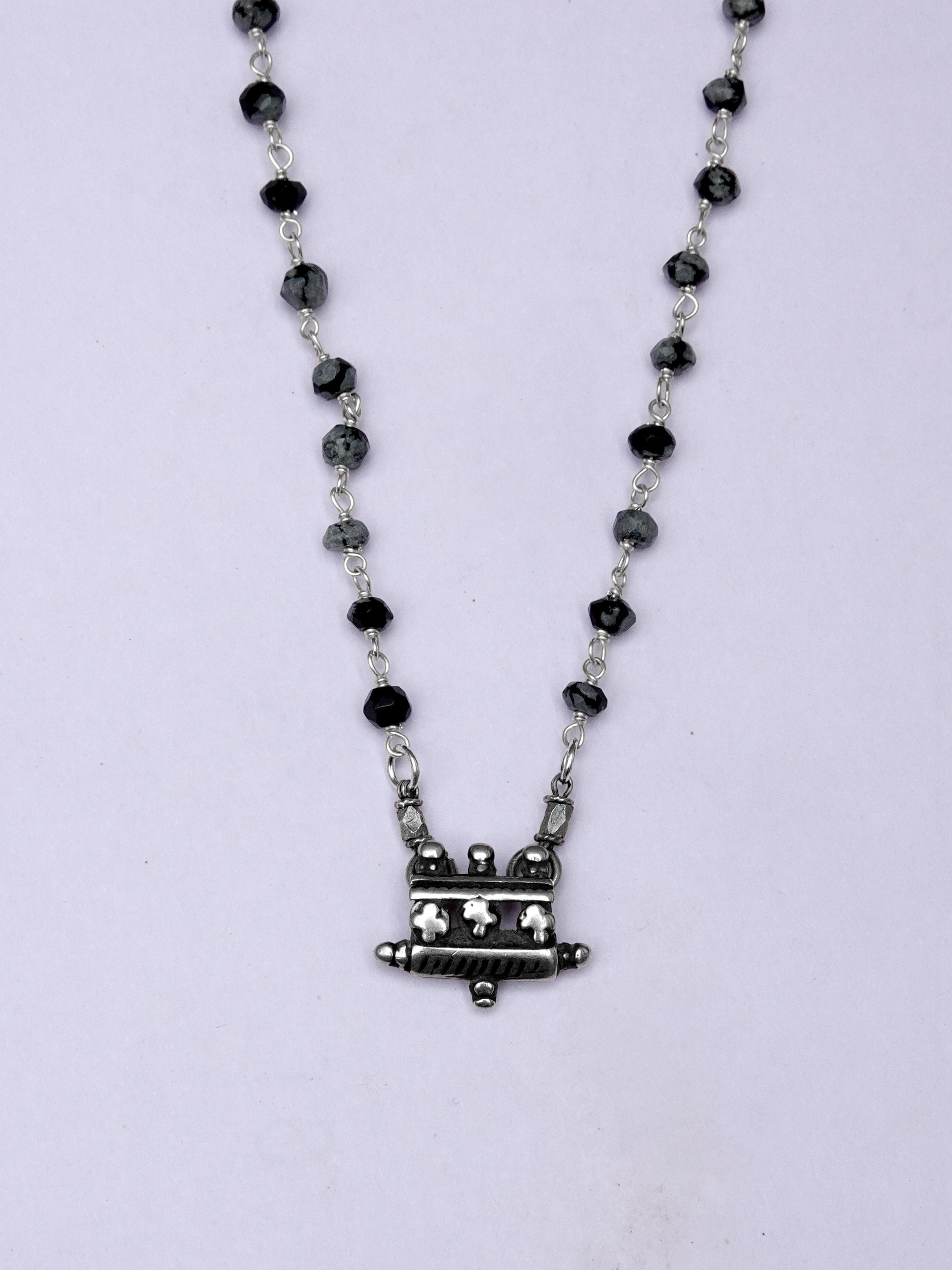 N132 Antique Miniature Taweez & Mangalsutra Beaded Silver Necklace