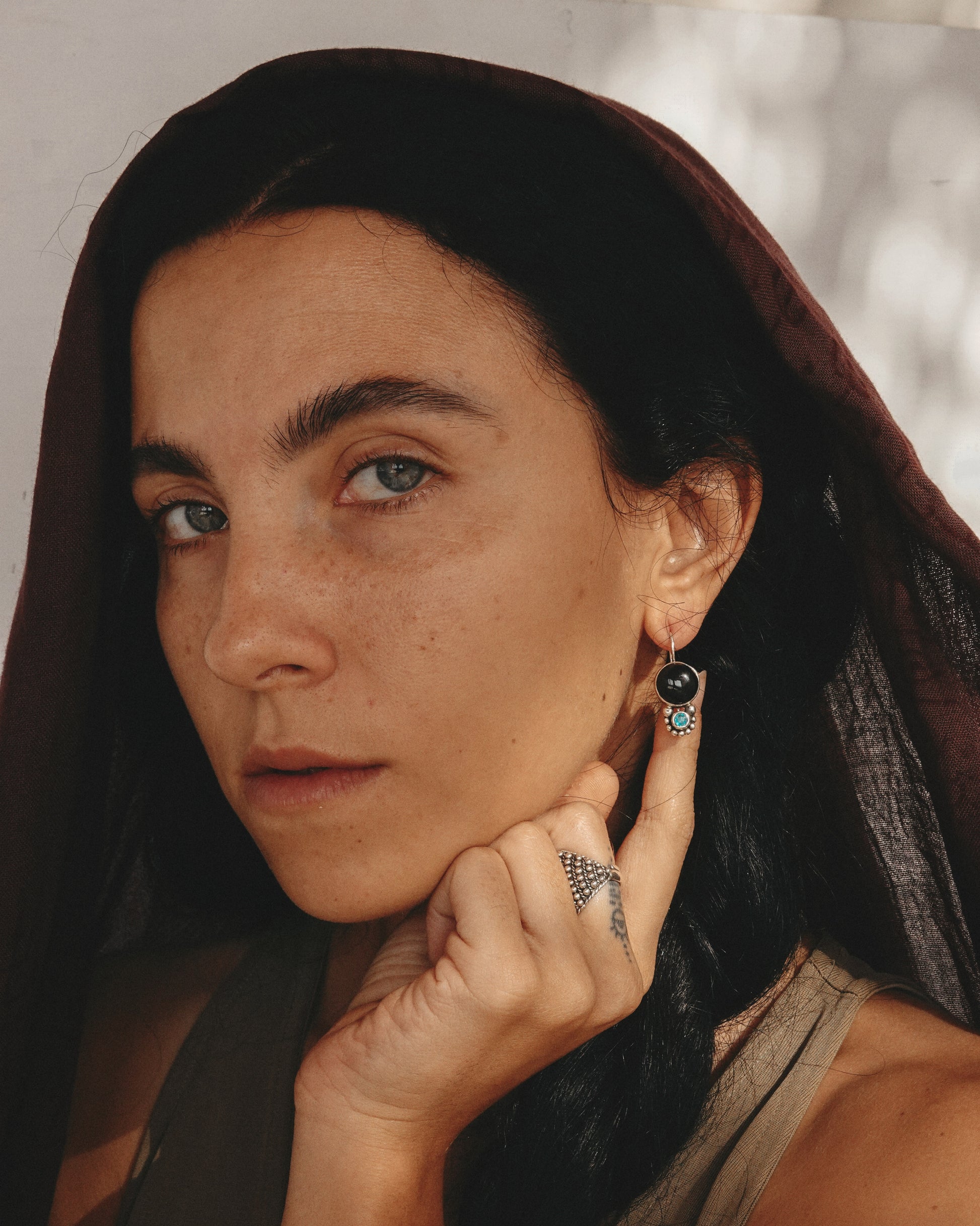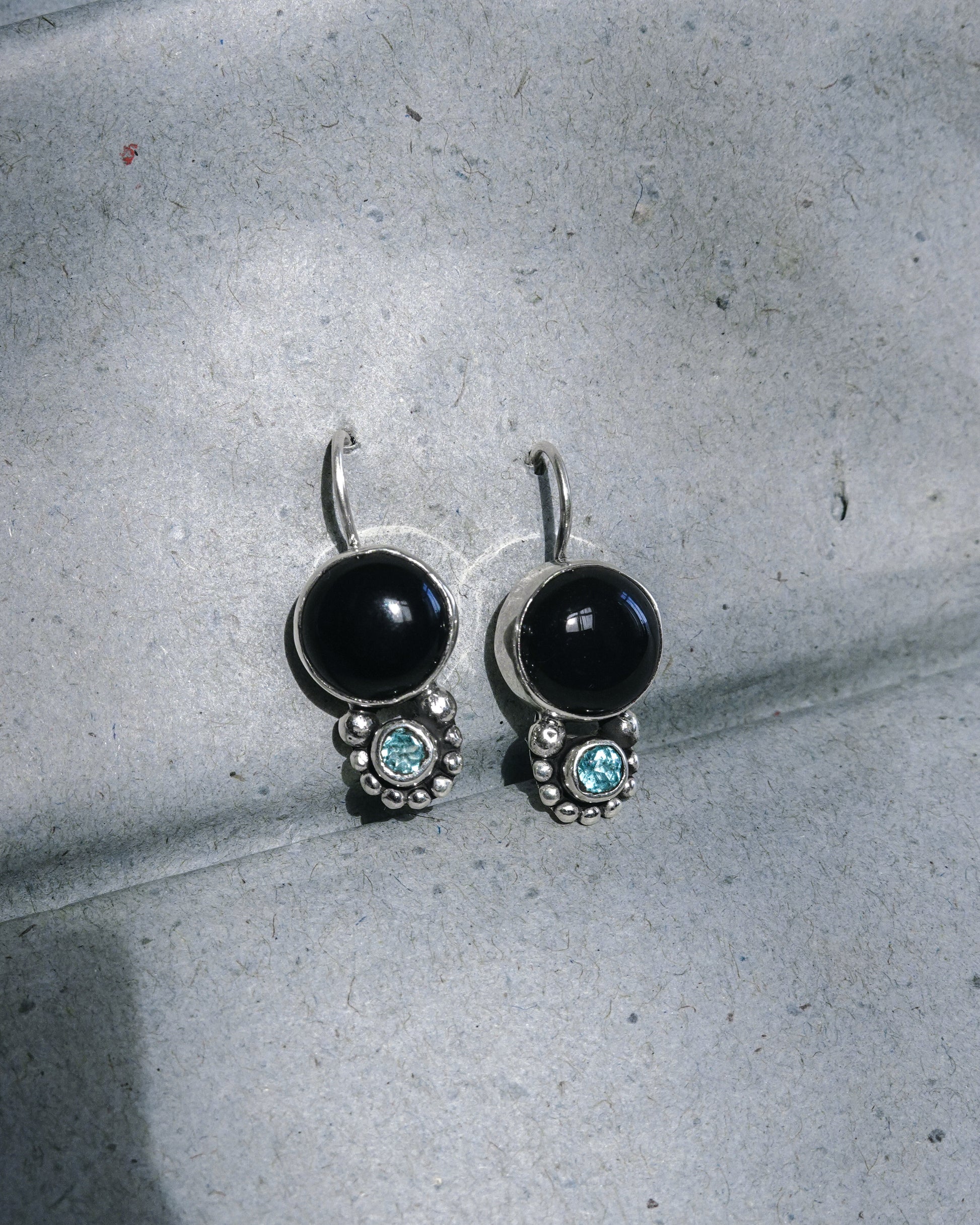 - Black Onyx & Turmaline Silver Earrings