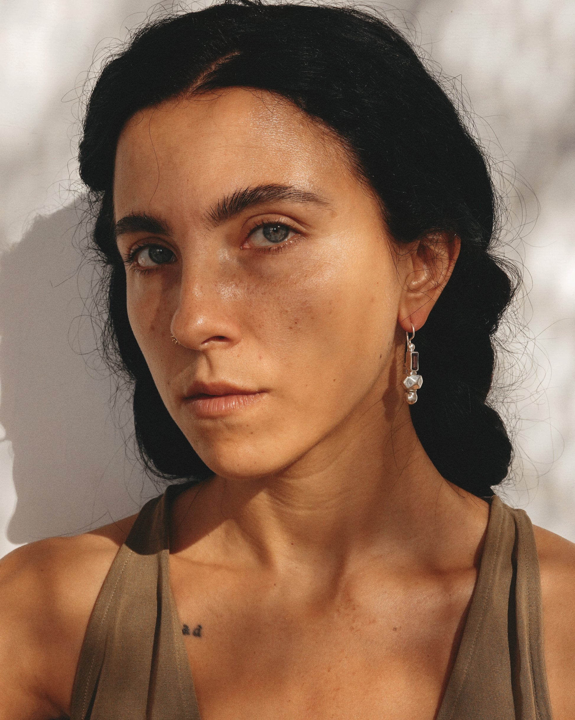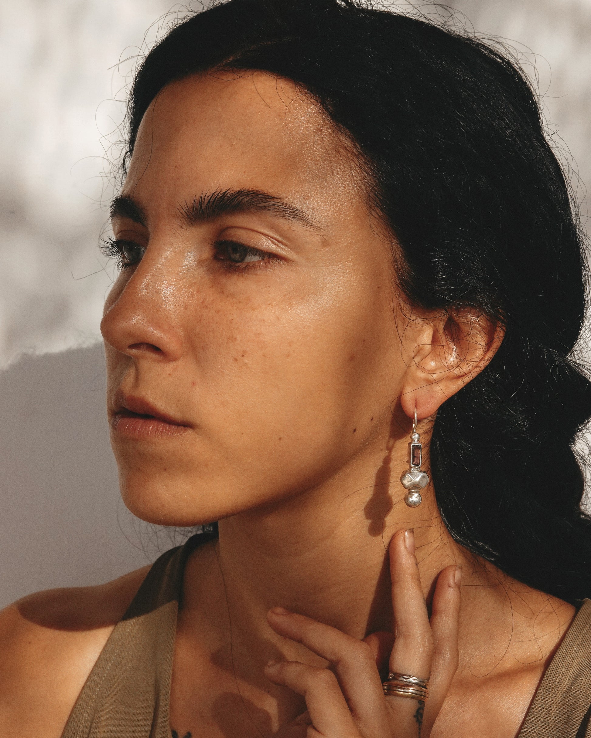 N143- Pink Turmaline Empty Dye-cutting Silver earrings