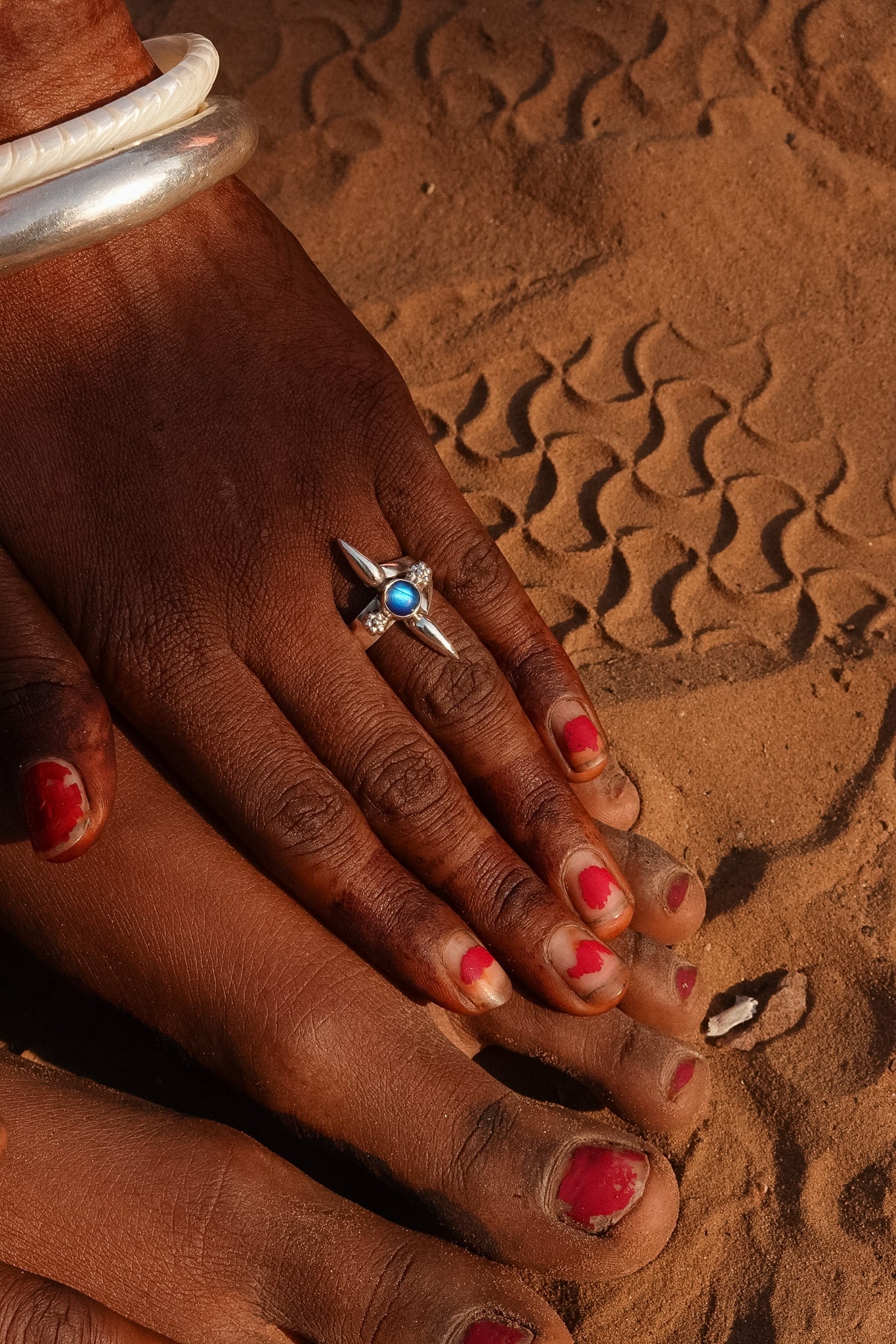 Rainbow moonstone has long been used in Indian jewelry traditions and is symbolically associated with lunar elements and natural cycles