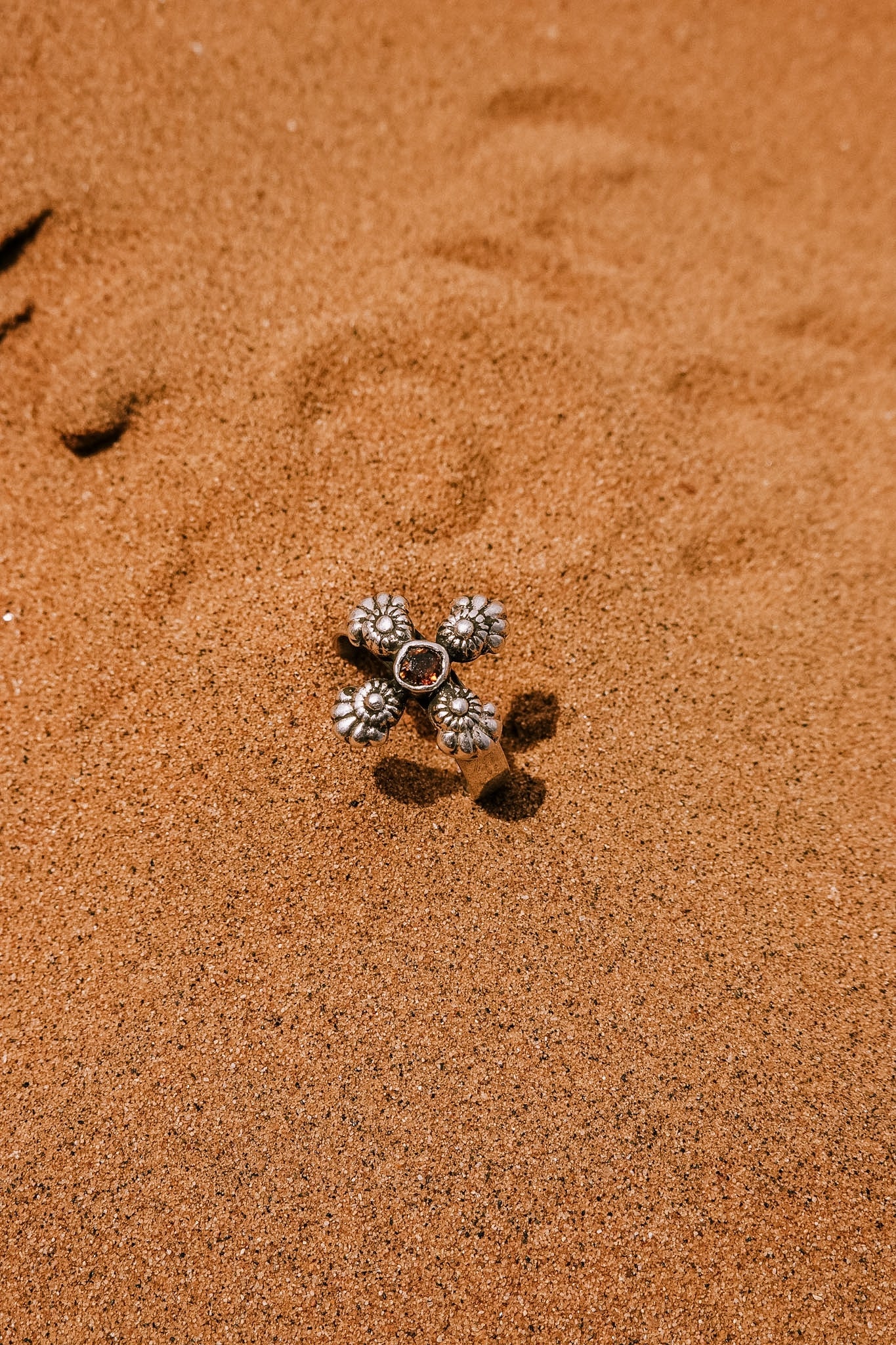 N181 - Phool Silver Ring Orange Garnet & Turmaline