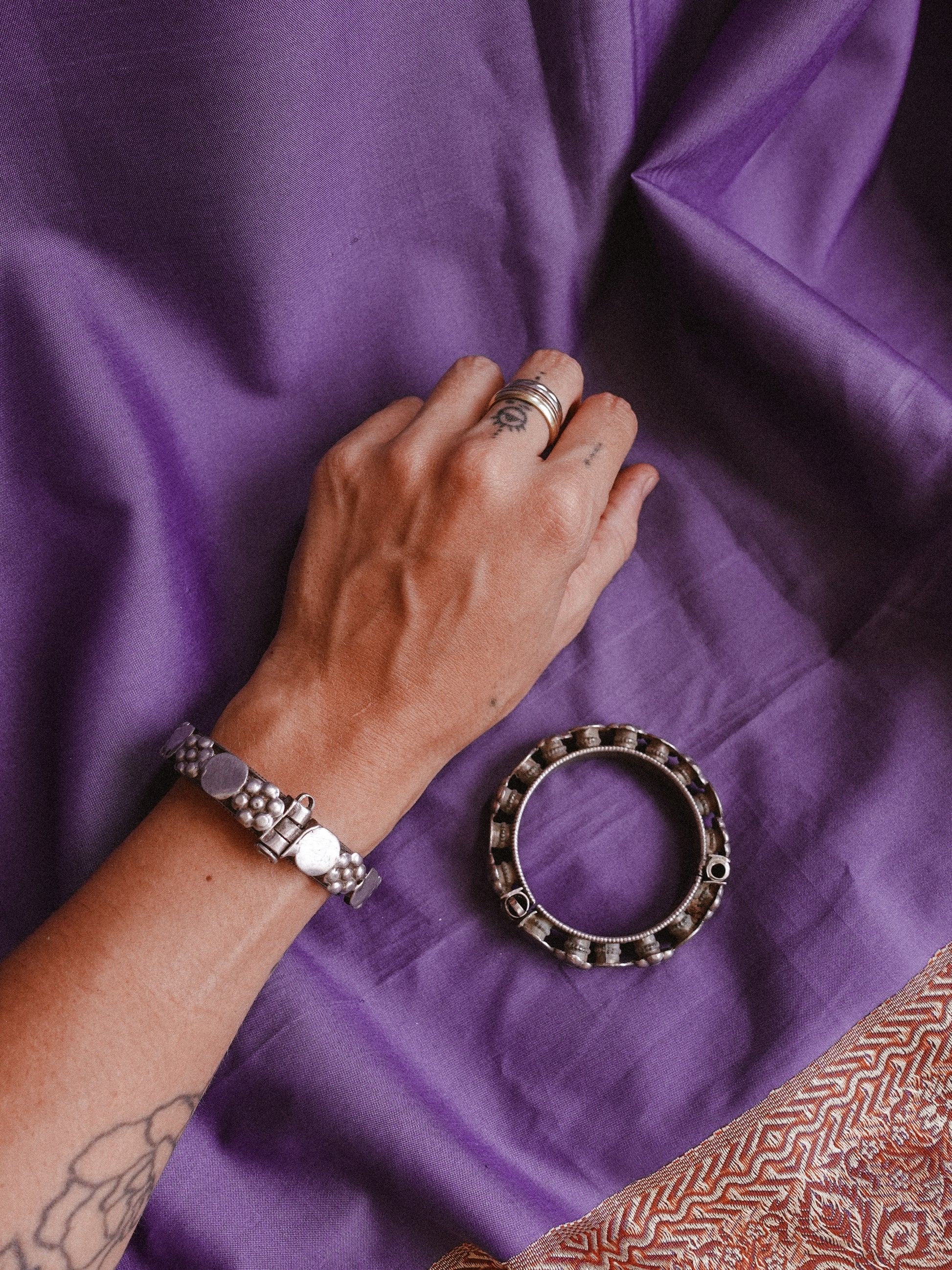 2 Handmade Banjara antique bangles from India (purity of silver aprox 80%)