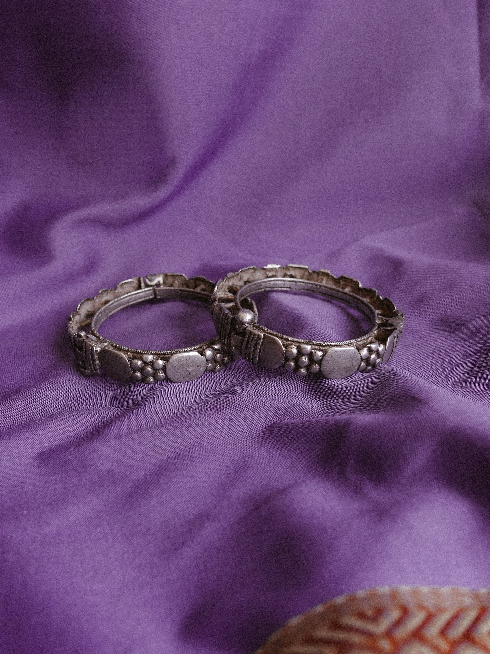 N63- Couple Rigid Silver Handmade Openable antique vintage Bangles from india