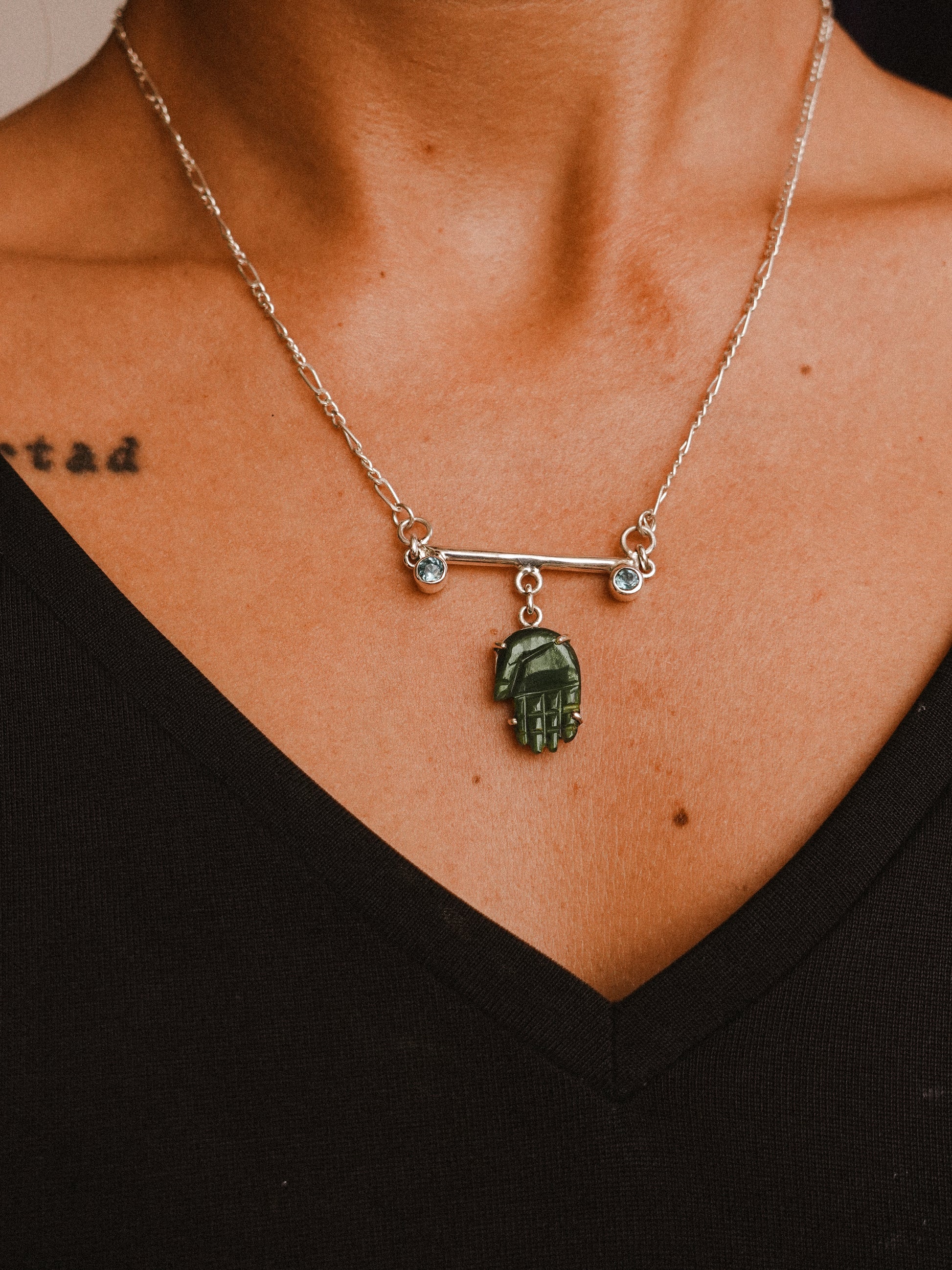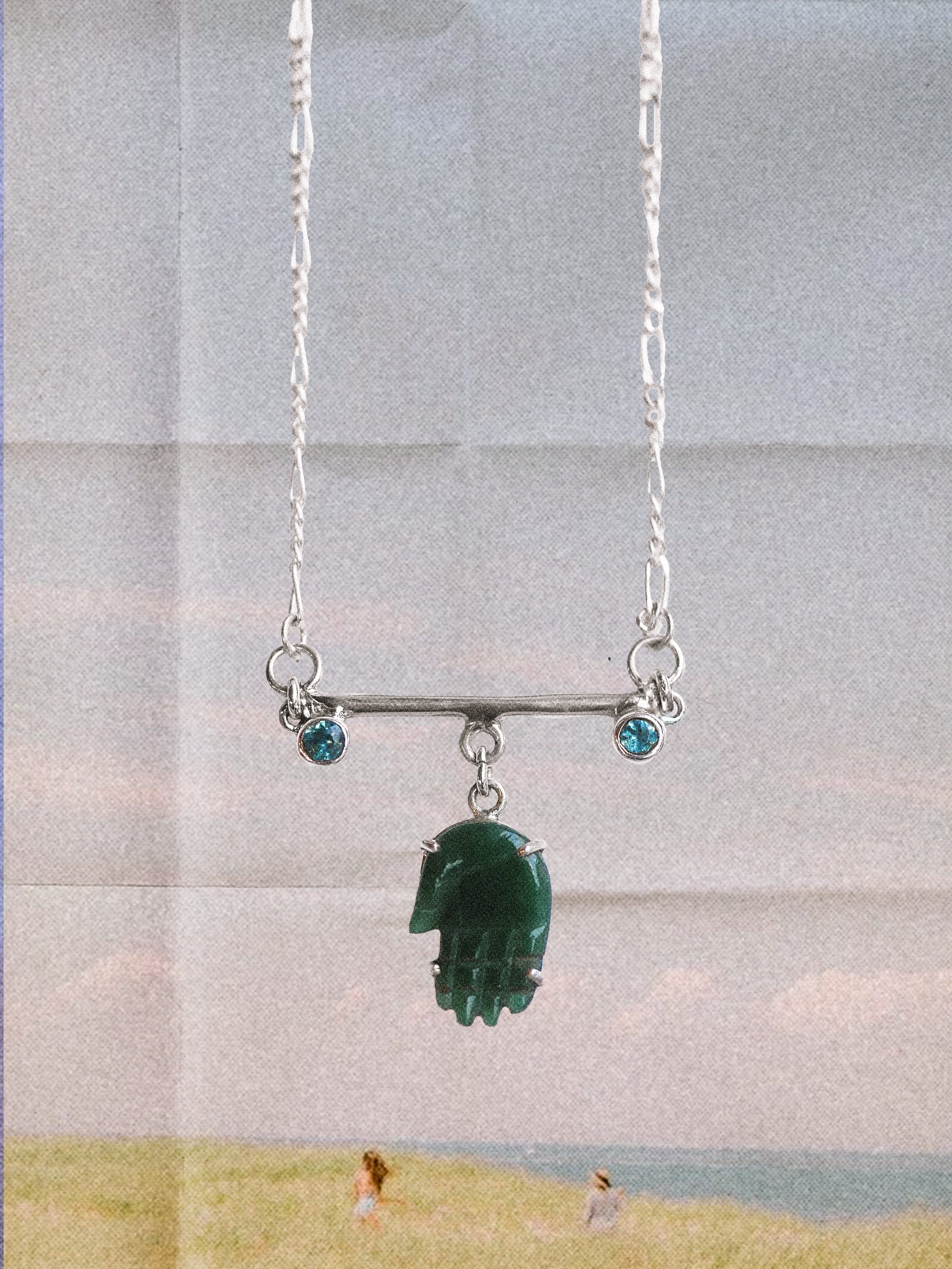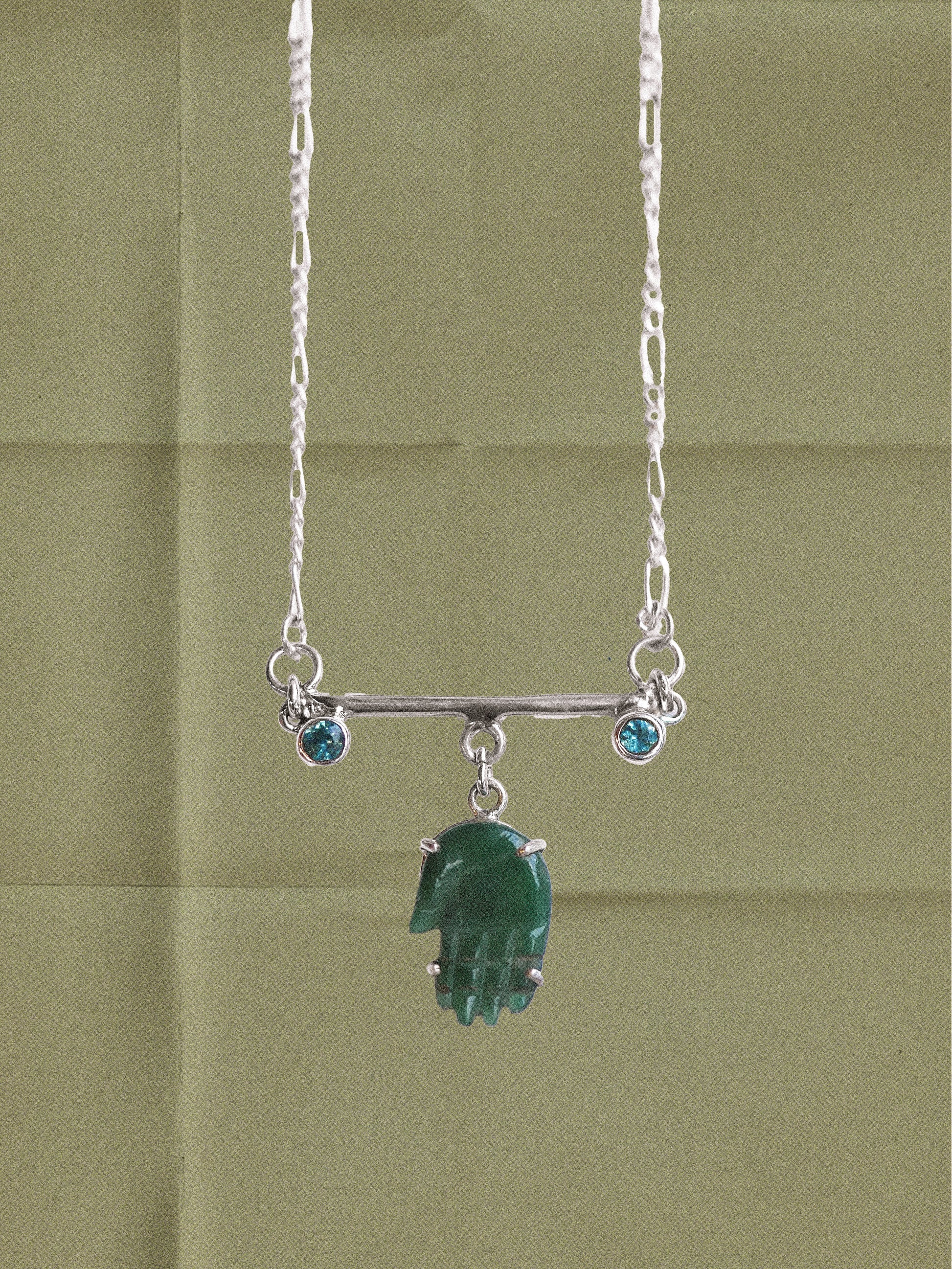 N88- Protection Agate Hand with duo of Apatite or Turmaline