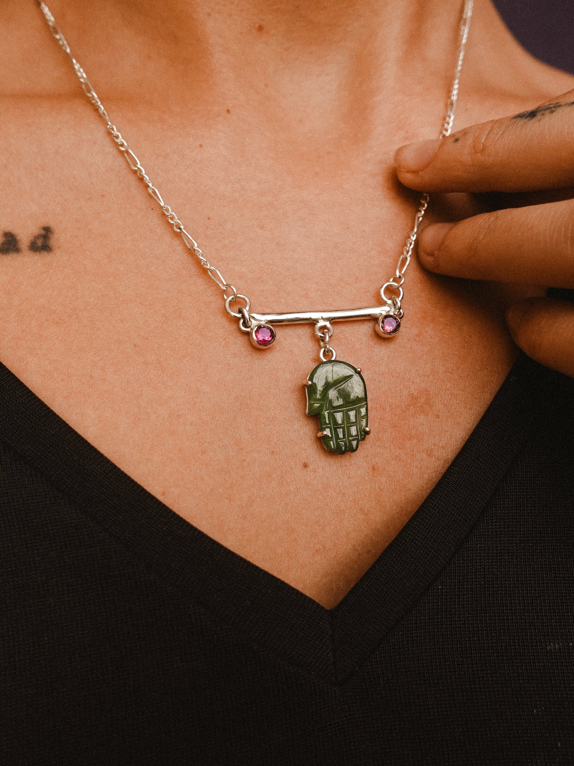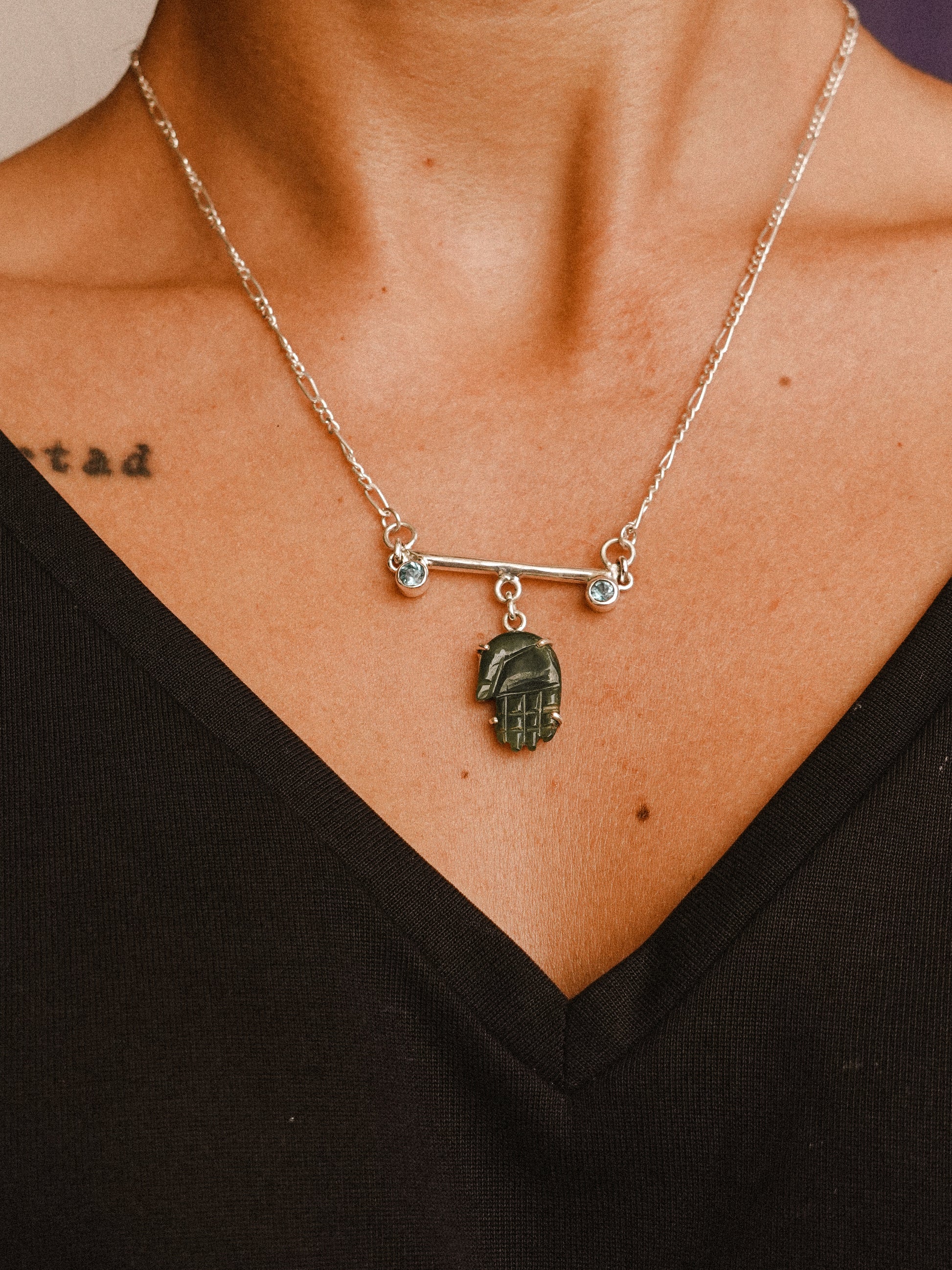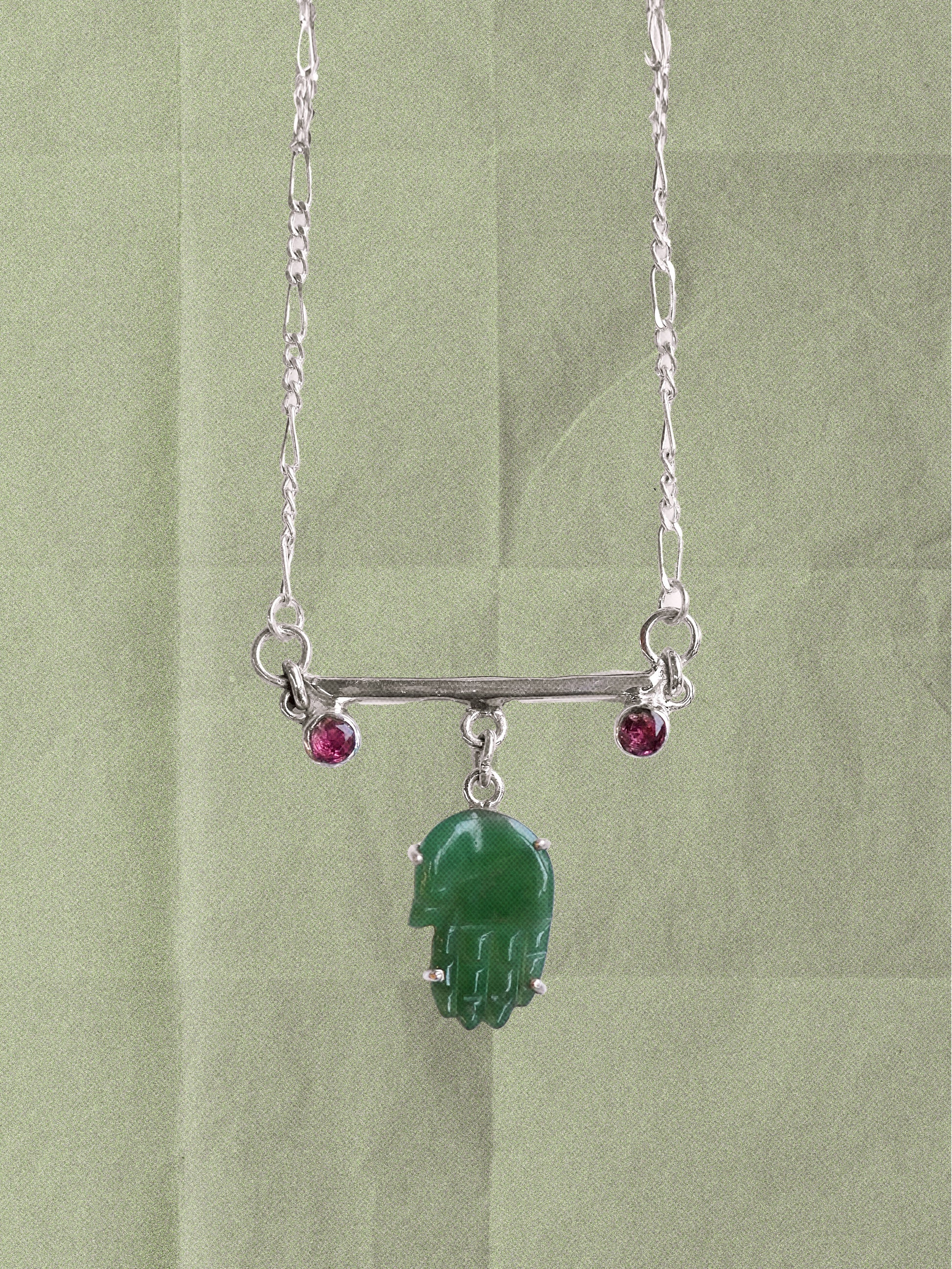 N88- Protection Agate Hand with duo of Apatite or Turmaline