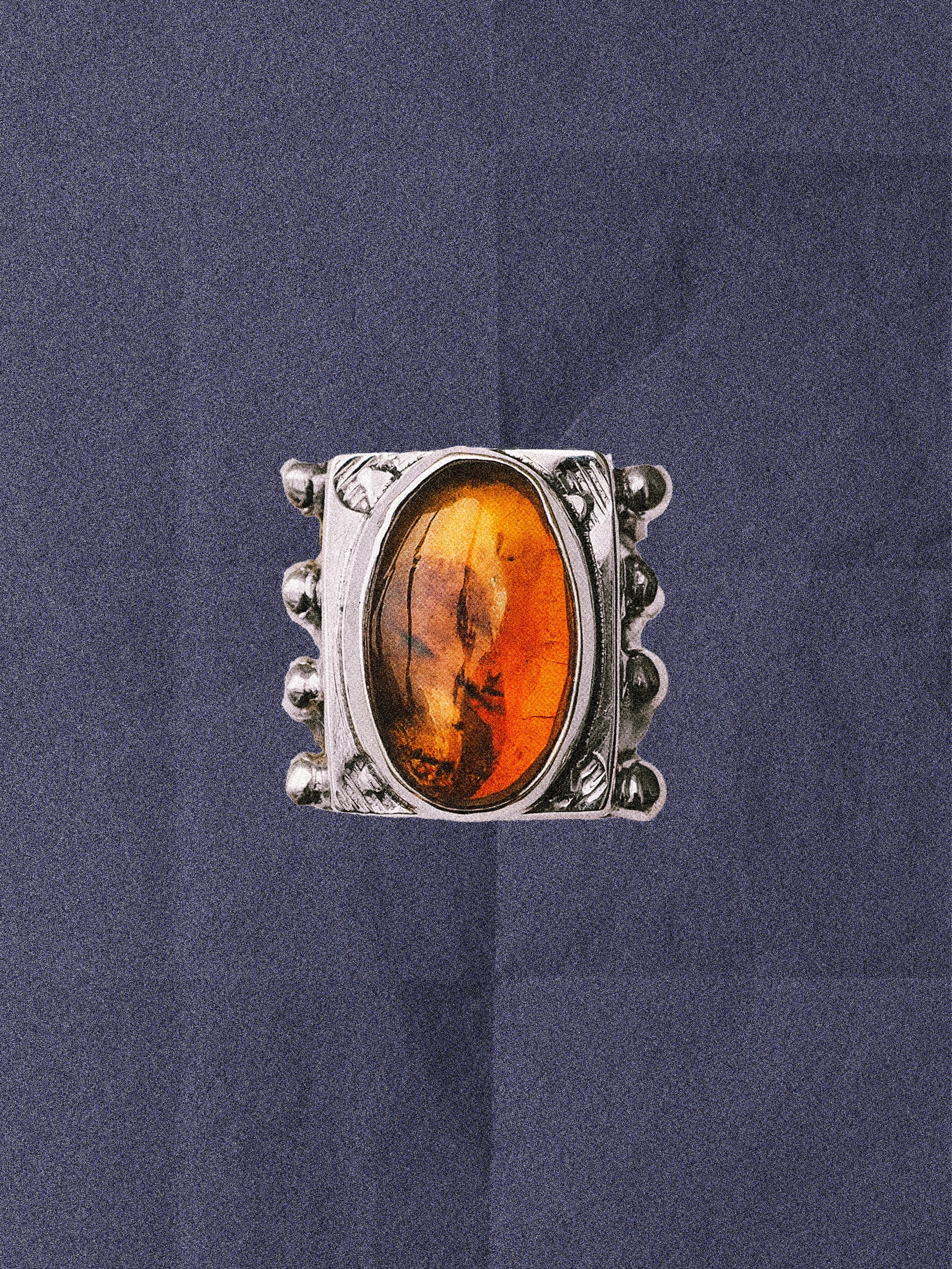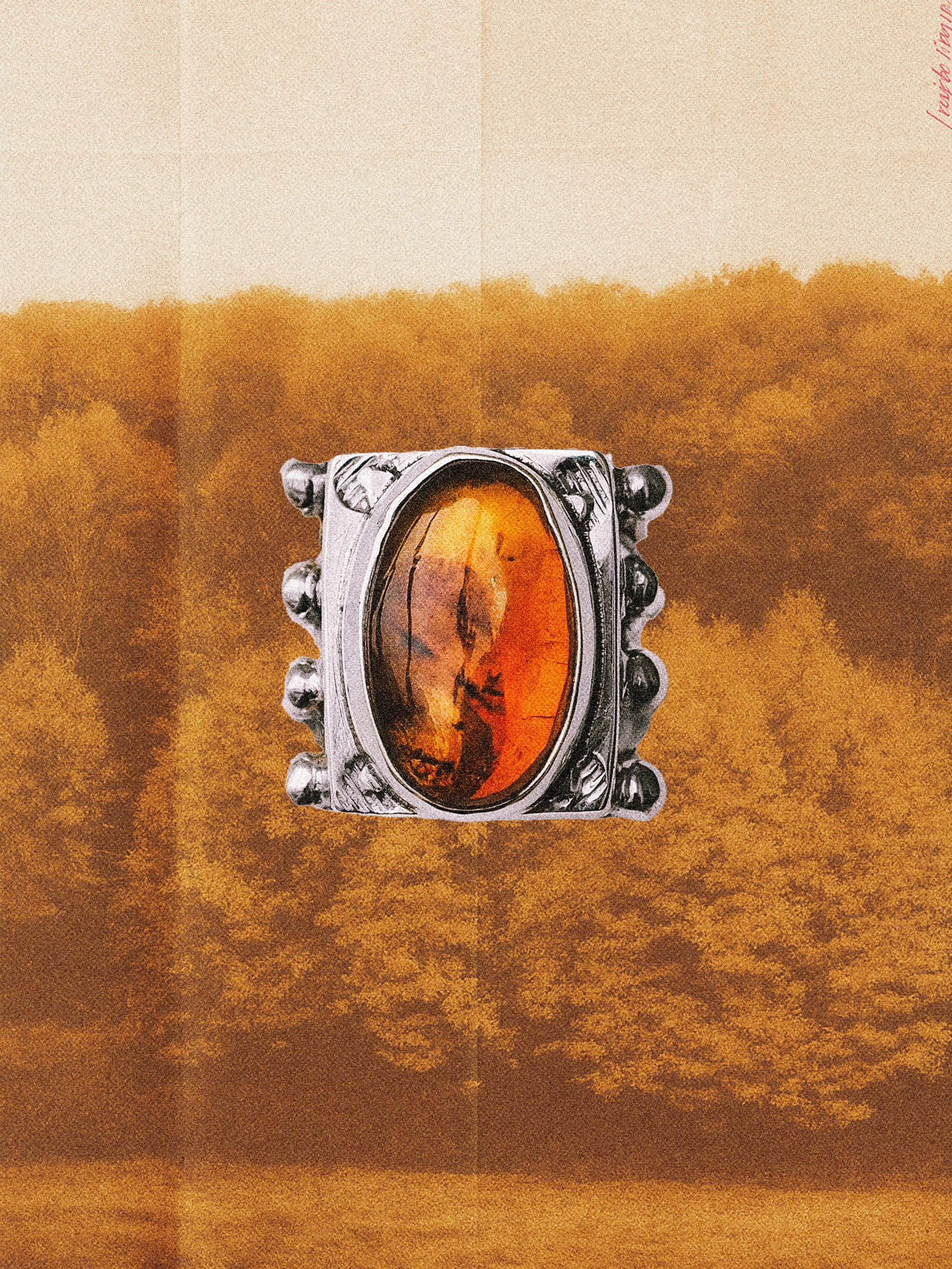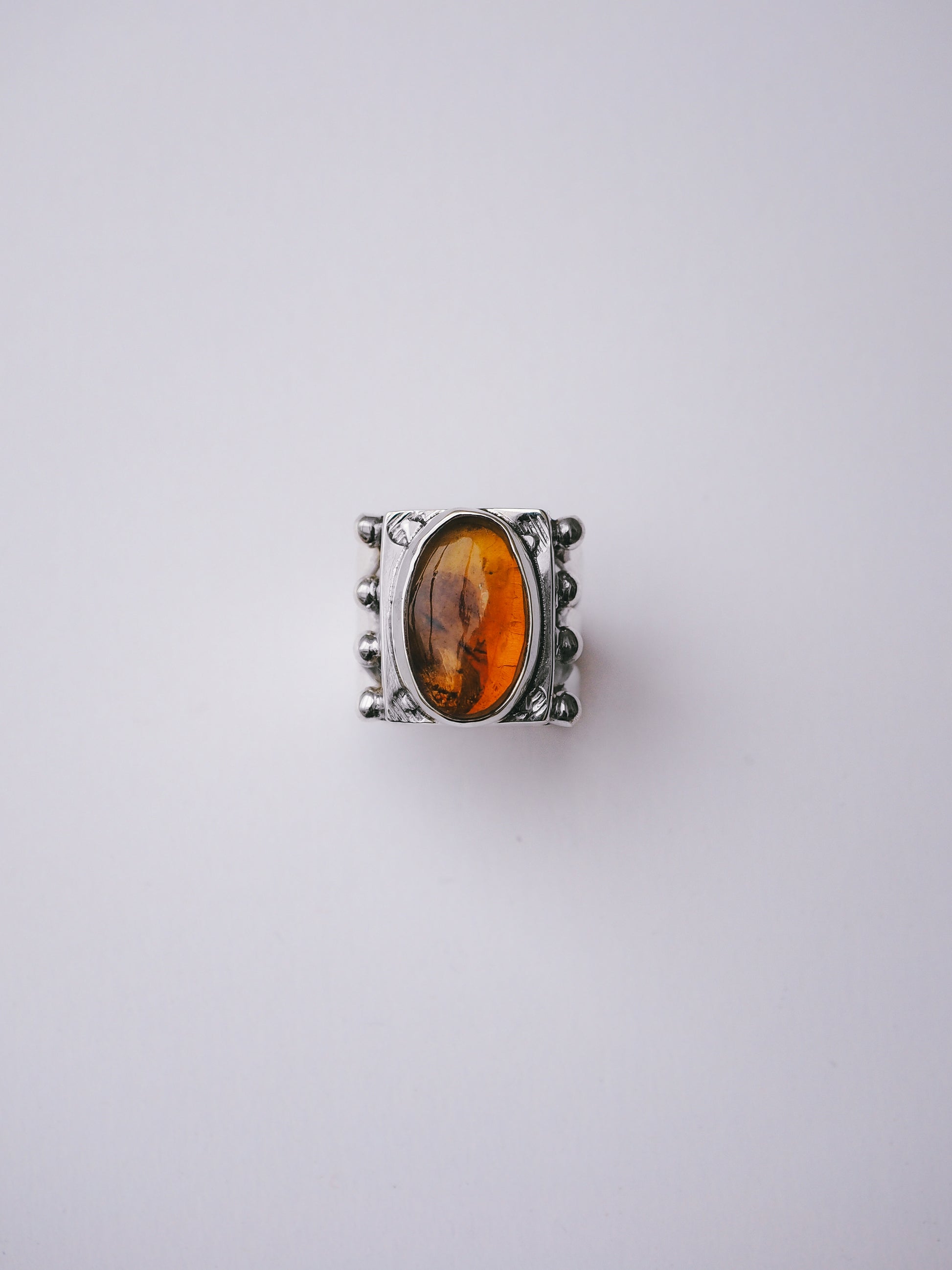 N77- Mexican Amber Silver 925 Adjustable Ring