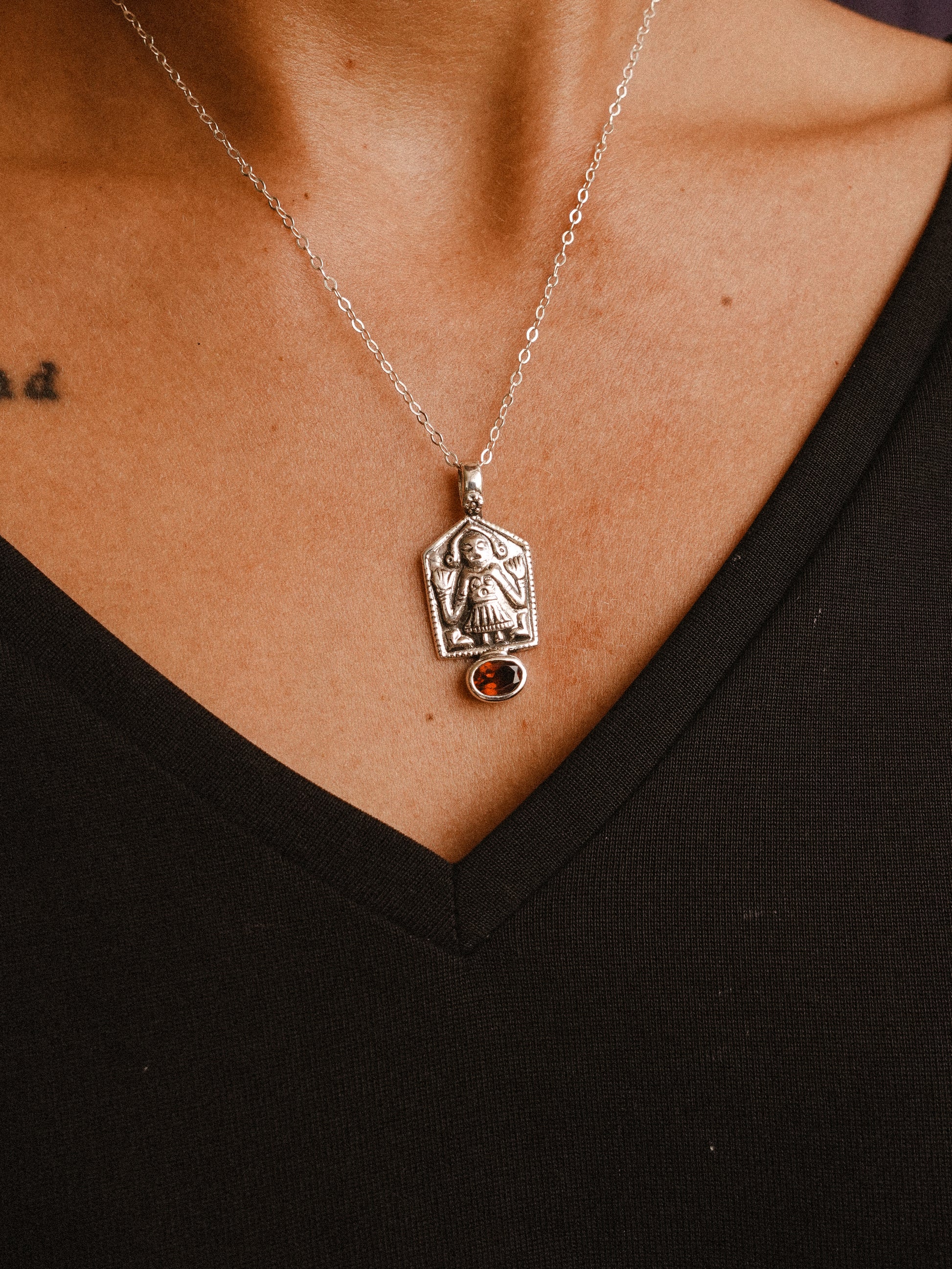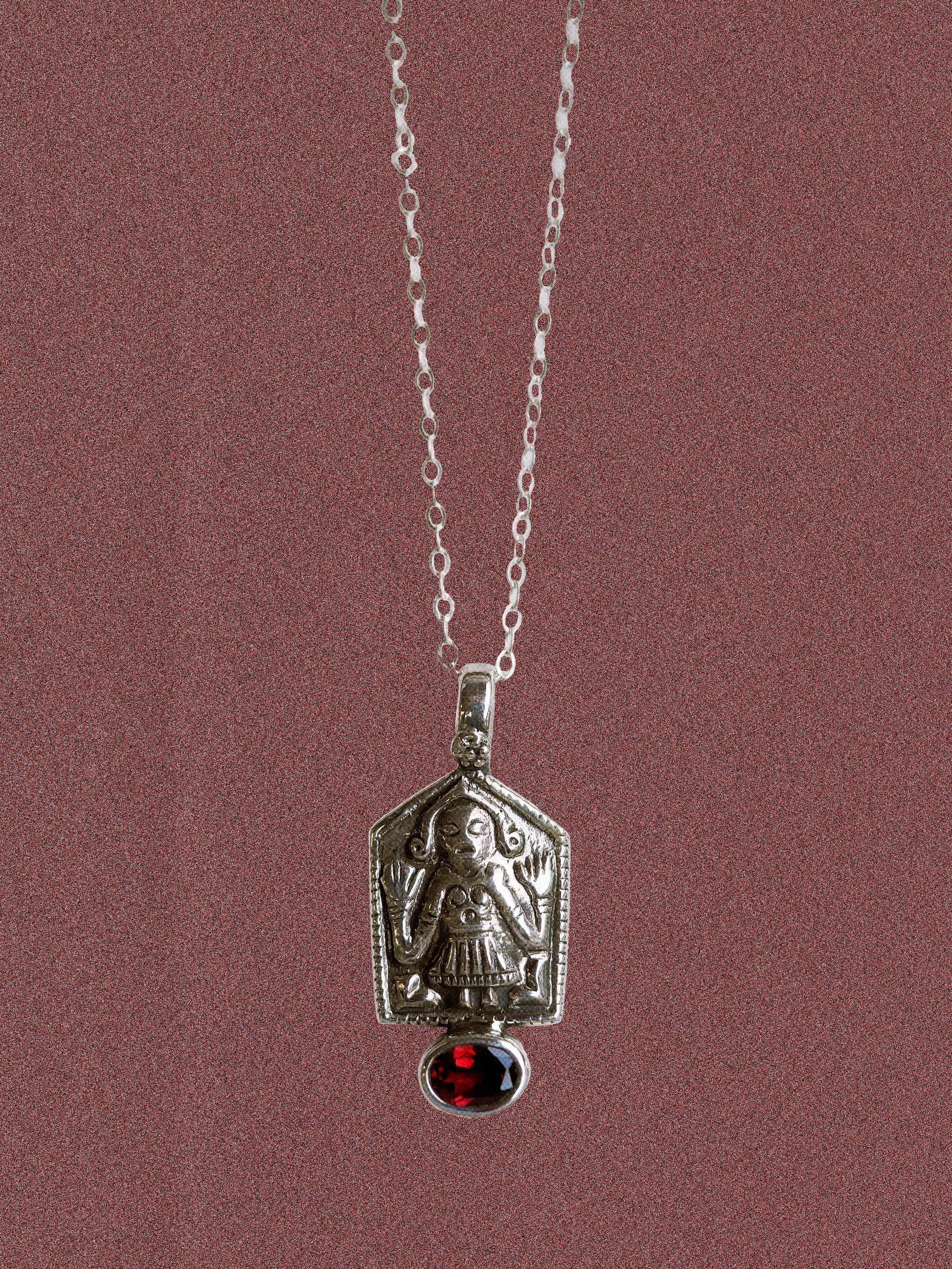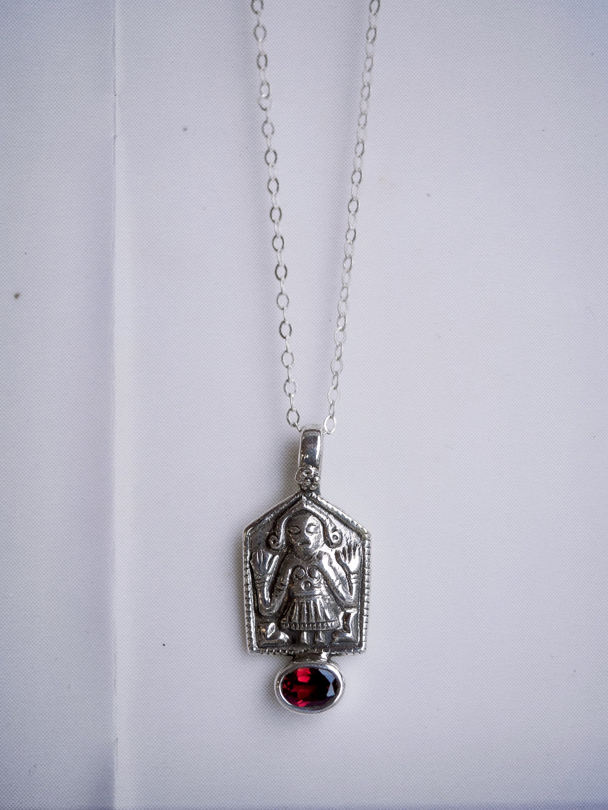 N81- AHOI MATA icon Necklace Silver 925 Handamade with faceted garnet