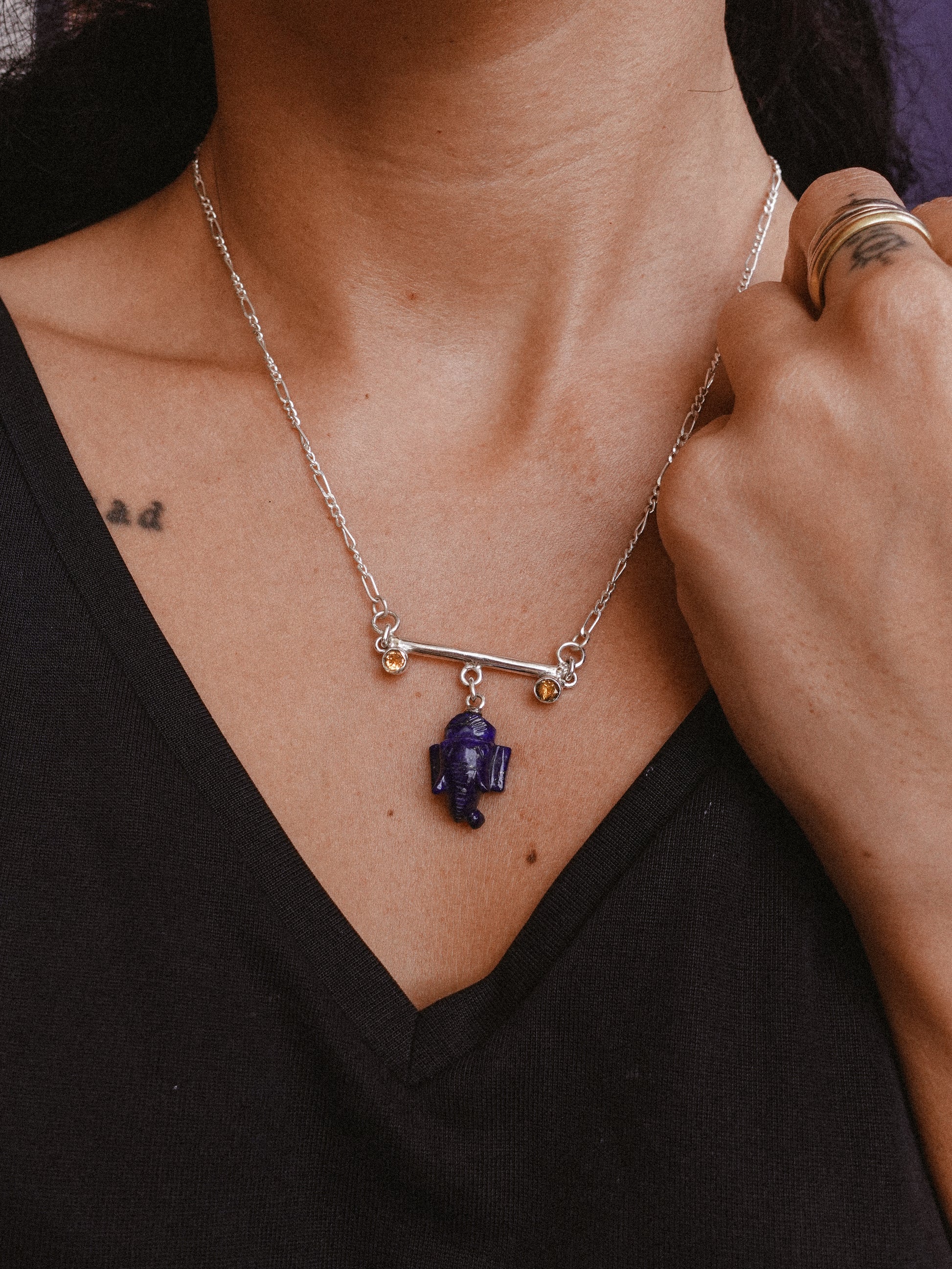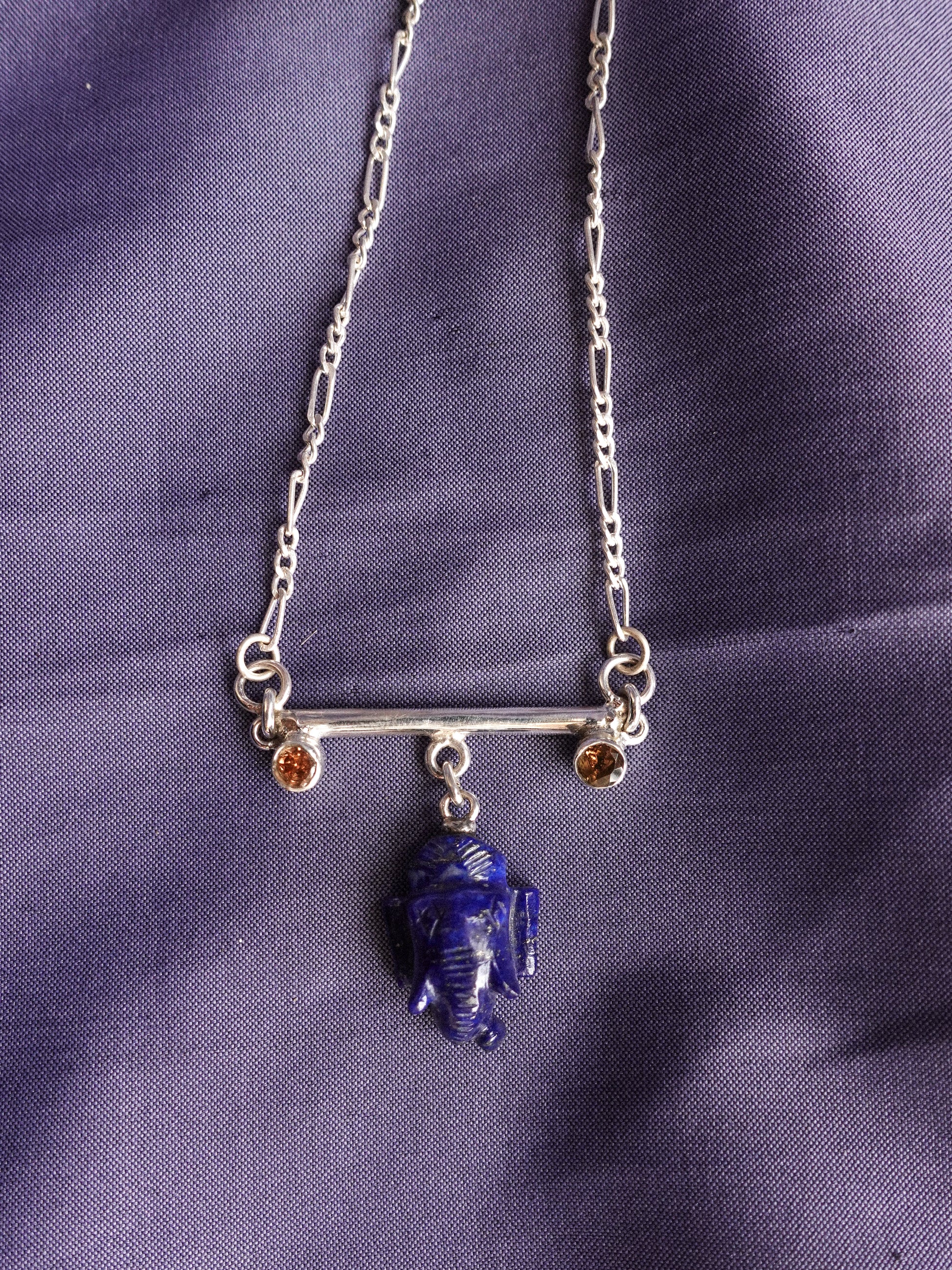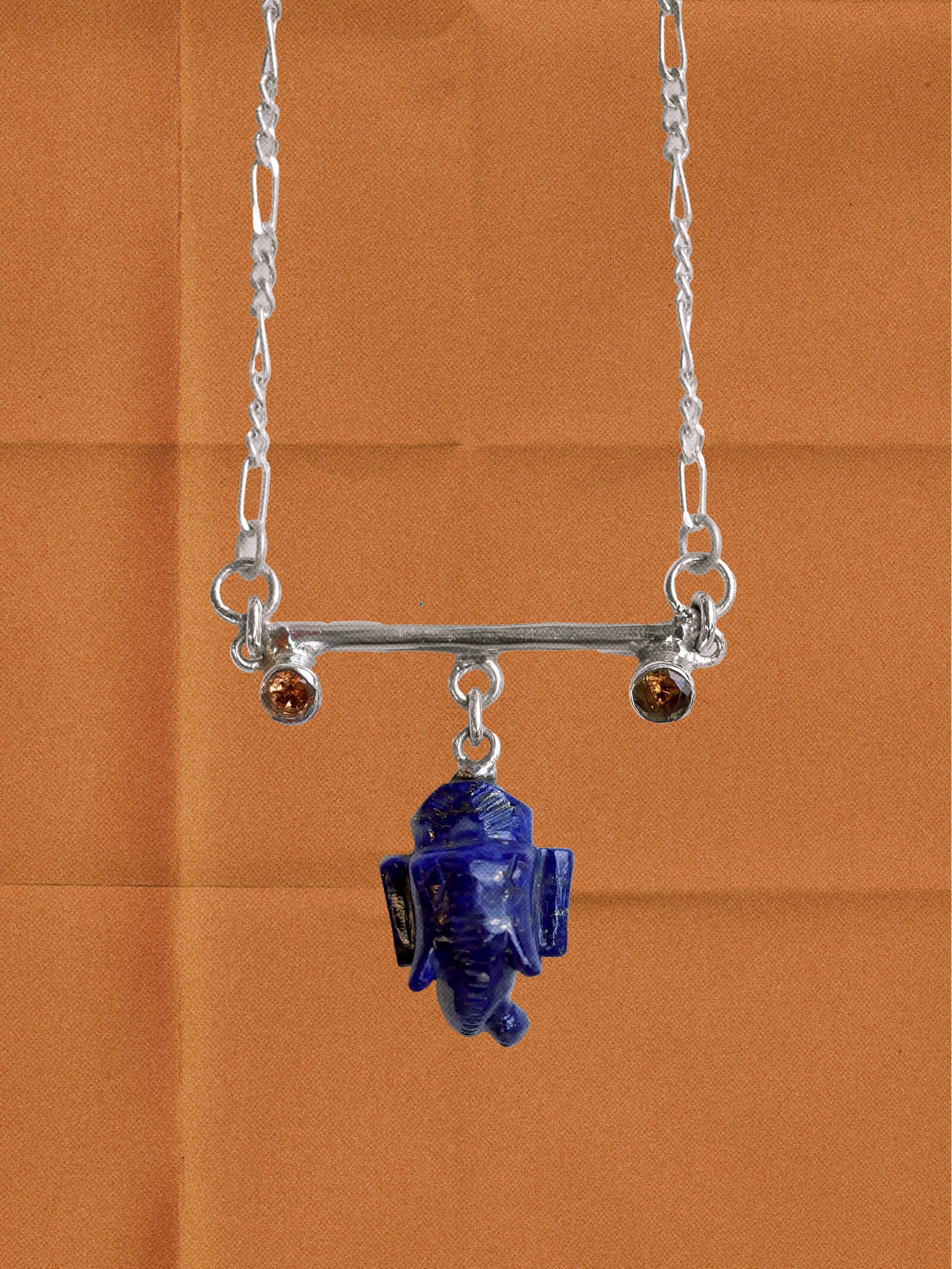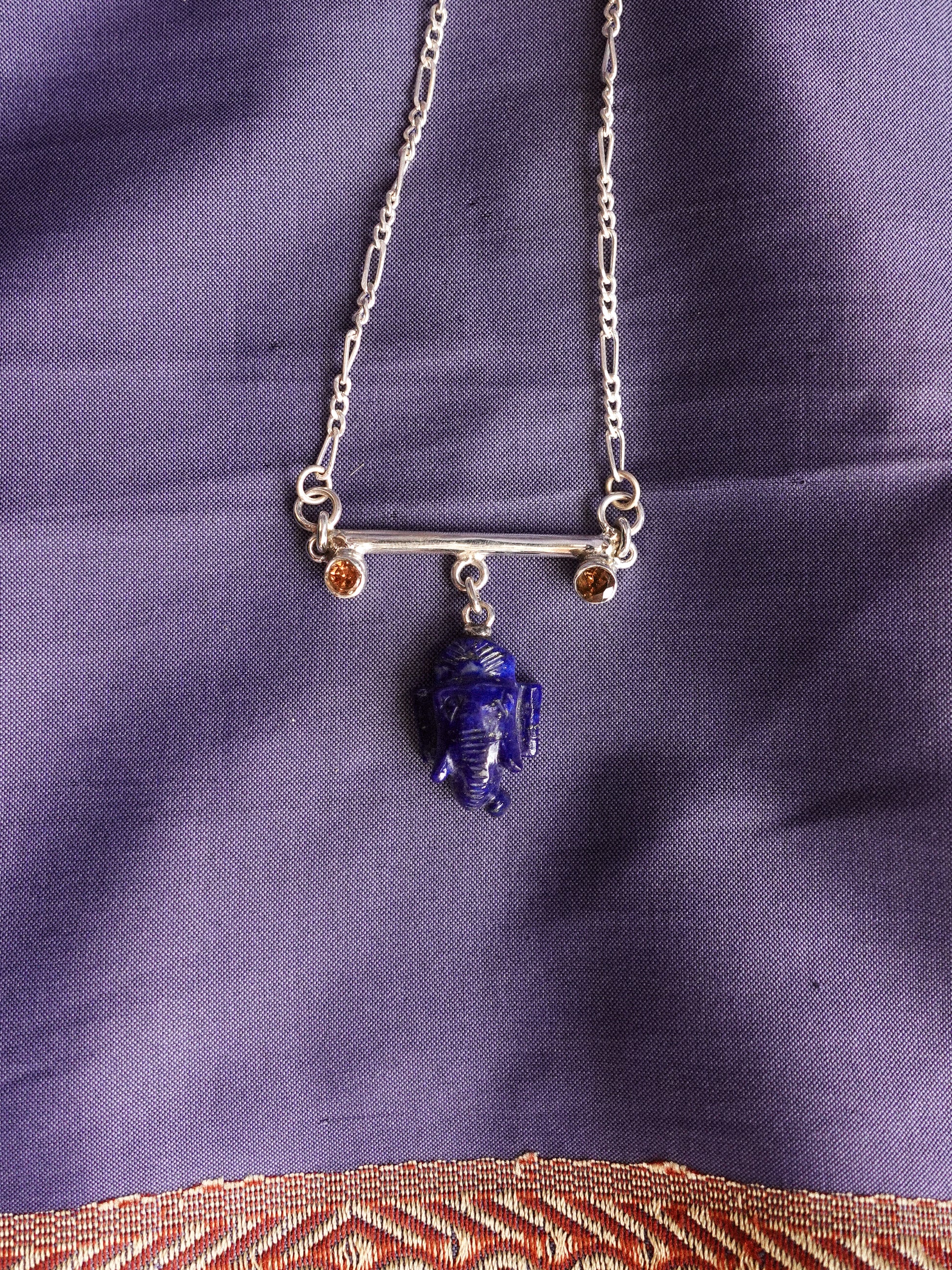 N89- Lord Ganesh icon Lapis-Lazuli, Wisdom, Protection, and good fortune, with Orange garnet