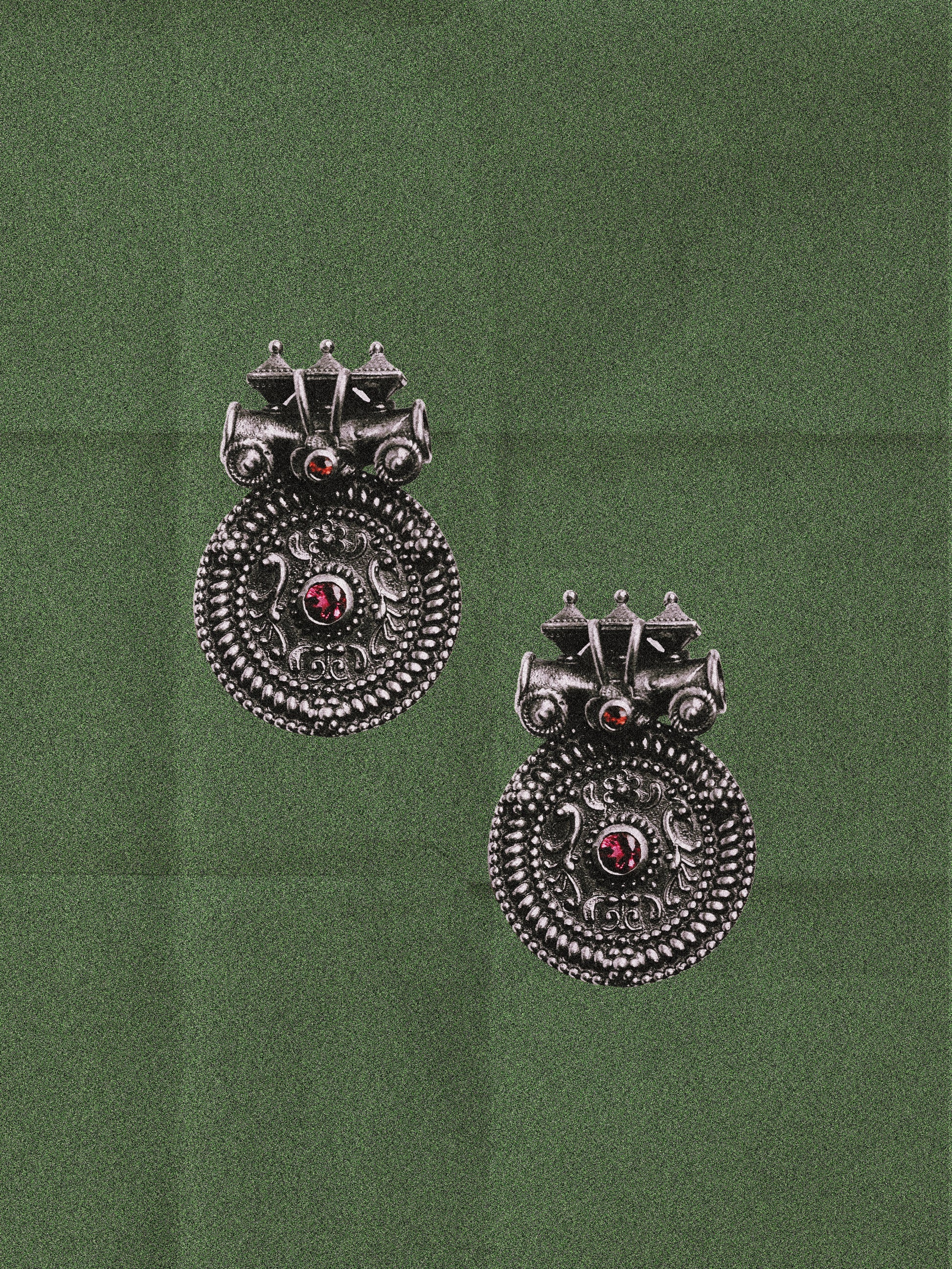 - Handcrafted earrings inspired by South Indian Mangal Sutra motifs